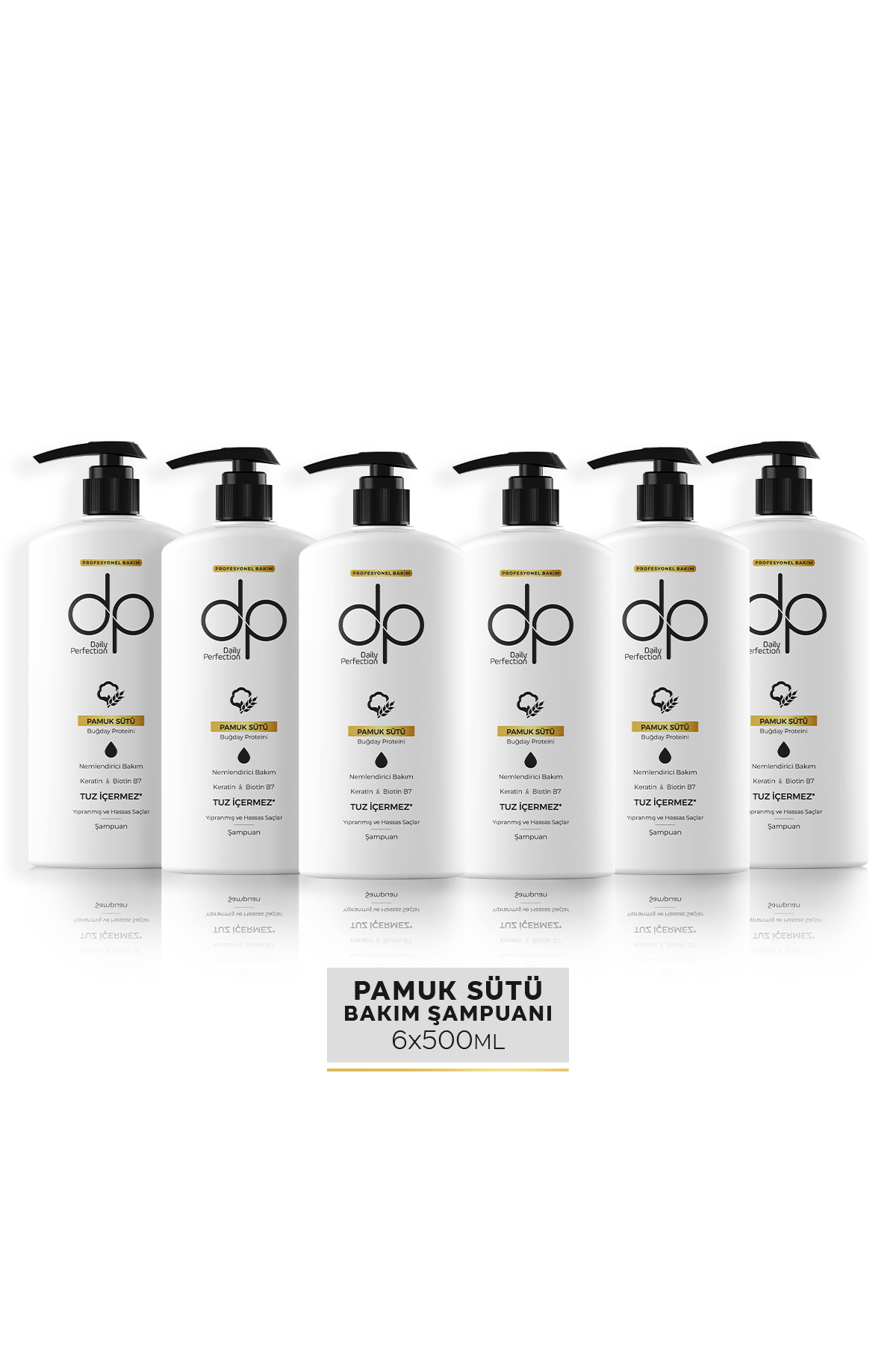 dp Daily Perfection Pamuk Sütü ve Bugday Proteini 500 ml sampuani, tuz içermeyen ve PRO-KERATIN özel formülüyle saç derisini ve saçi yipratmadan temizler.