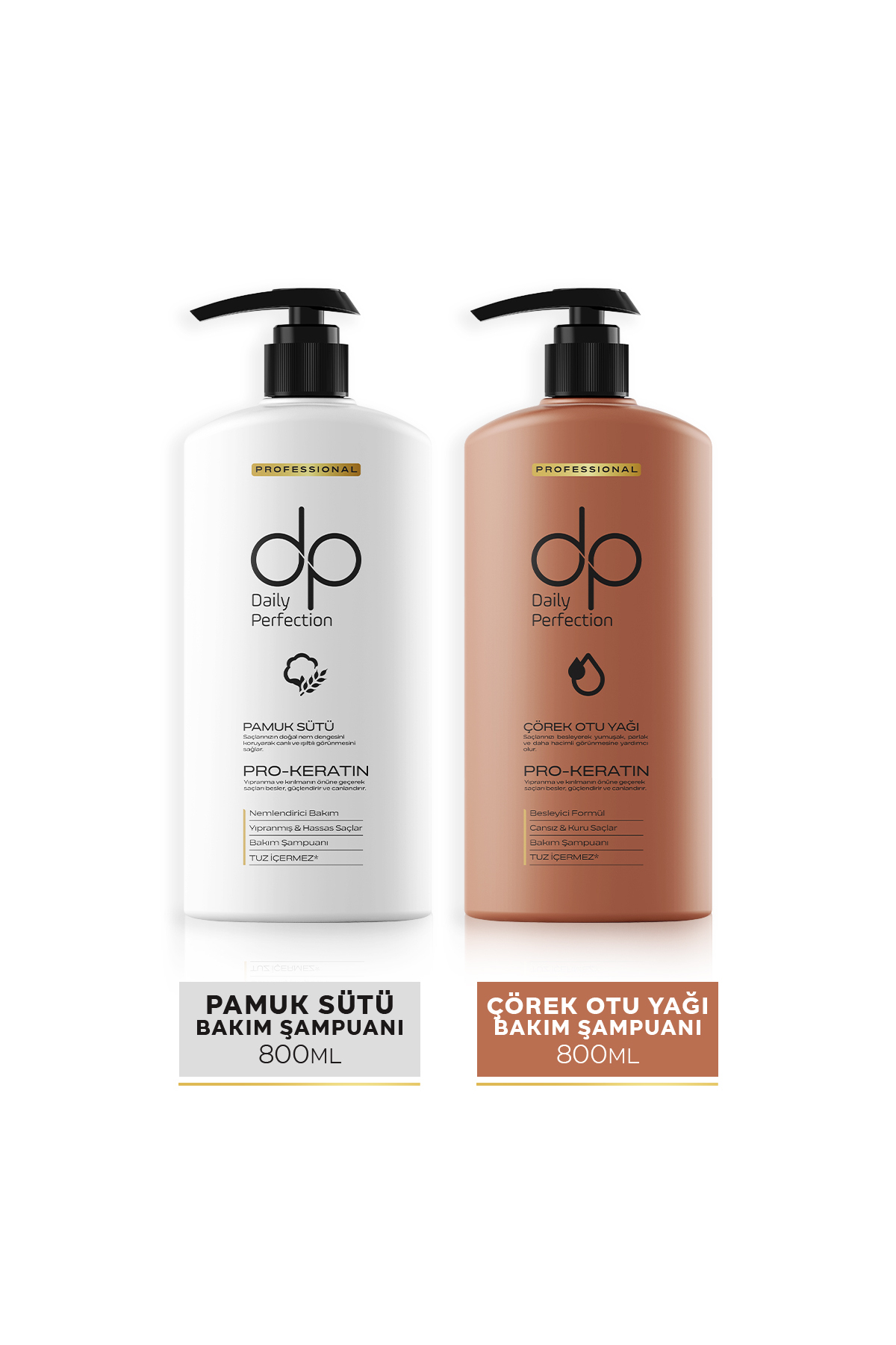 dp Daily Perfection Pamuk Sütü 800 ml sampuani, tuz içermeyen ve PRO-KERATIN özel formülüyle saç derisini ve saçi yipratmadan temizler.