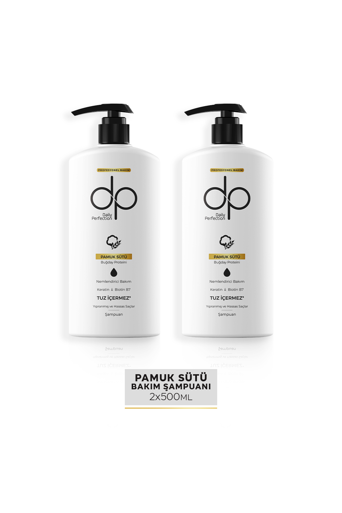dp Daily Perfection Pamuk Sütü ve Bugday Proteini 500 ml sampuani, tuz içermeyen ve PRO-KERATIN özel formülüyle saç derisini ve saçi yipratmadan temizler.