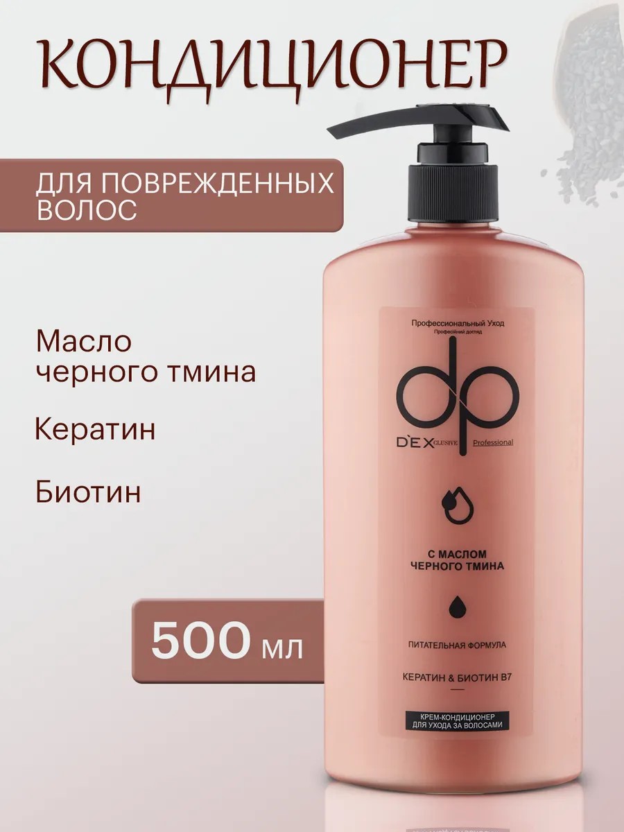 Кондиционер для волос с органическим маслом чёрного тмина DP от известного турецкого производителя TAT Kimya, в объёме 500 мл. Средство одинаково подходит обладателям как нормальных, так и сухих, жирных, окрашенных, пористых, ломких, кудрявых волос.