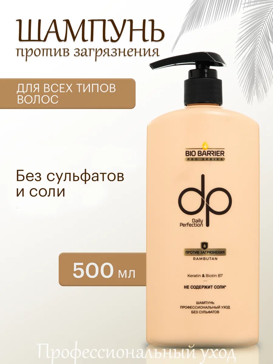 Professional hair shampoos from the DP BIO BARRIER series from the renowned Turkish manufacturer TAT Kimya, available in 500 ml bottles with a dispenser. This line of care products includes a moisturizing shampoo for dry hair, a UV filter for color-treated hair, a deep cleansing shampoo for oily hair, and an anti-dandruff shampoo for all hair types. Free of sulfates, SLS (except for the anti-dandruff shampoo), and parabens, these shampoos can be used after Botox, keratin straightening, and lamination procedures. Whether you have normal hair, porous hair, brittle hair, or curly hair, you'll find the perfect care for you. The intelligent formula of these products prevents overdrying your hair and scalp, even with daily washing. Active ingredients: Biotin and panthenol have unique moisturizing properties and protect cell membranes. Hydrolyzed keratin restores healthy shine and elasticity to your hair. Wheat proteins, urea, lactic acid, and vitamin C provide complete restoration of weakened hair from the roots down, eliminating dandruff and split ends, leaving hair healthy. Rambutan extract has super-cleansing properties and detoxifies, allowing hair to stay clean longer and retain volume at the roots. UV filters create a barrier, reflecting the sun's rays. Plant-based surfactants, combined with glycerin, provide a gentle and caring effect. Directions for use: Apply shampoo to damp hair, distribute it throughout the lengths, massage, and then rinse thoroughly with warm running water, avoiding contact with eyes.