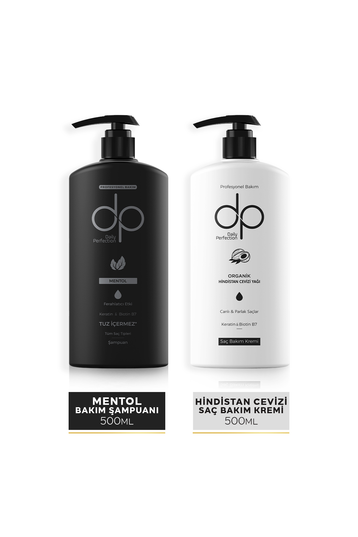 .dp Daily Perfection Mentol 500 ml sampuani, tuz içermeyen ve PRO-KERATIN özel formülüyle saç derisini ve saçi yipratmadan temizler.