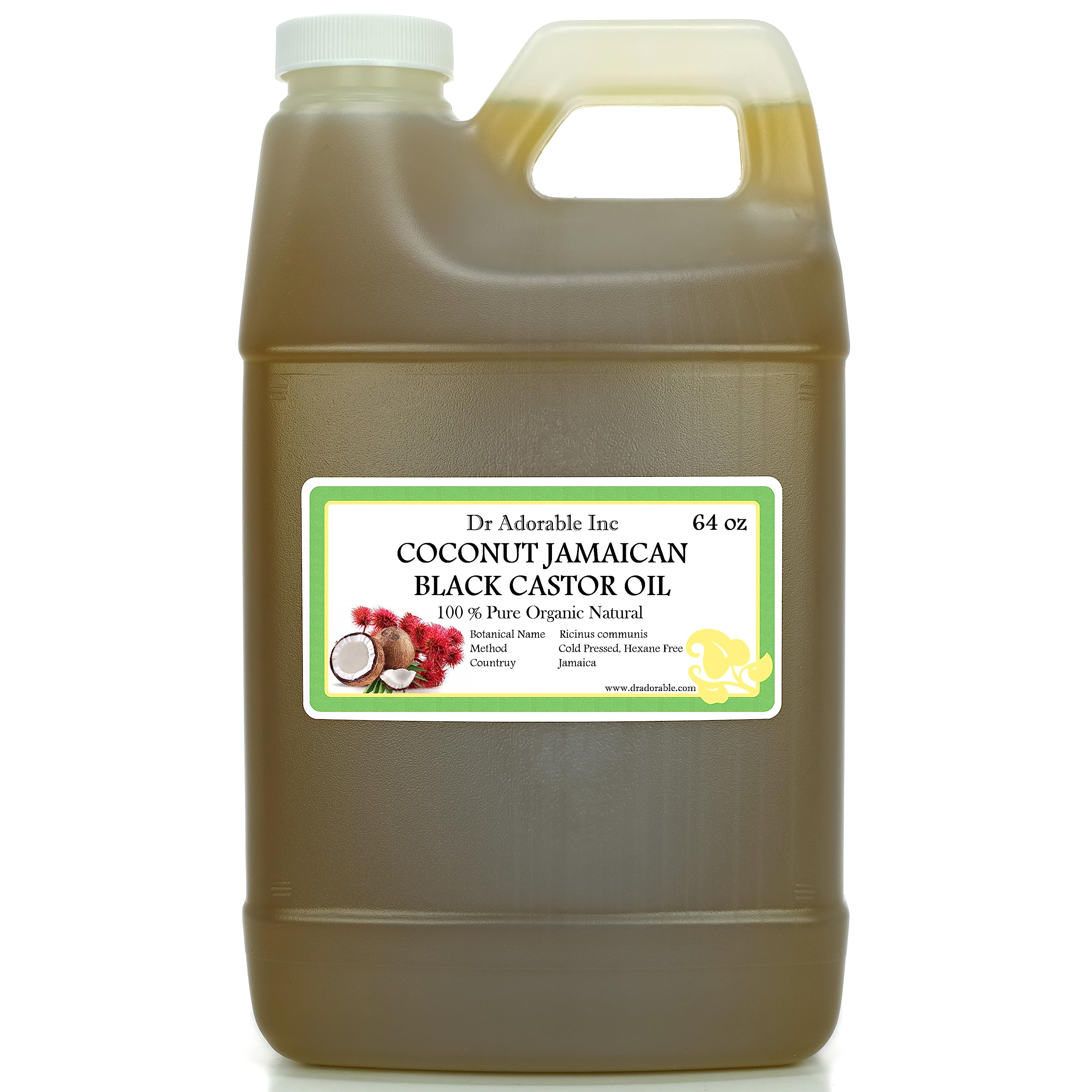Dr Adorable - 64 oz - Coconut Jamaican Black Castor Oil - Pure Natural Organic Strengthen Grow & Restore Hair Care