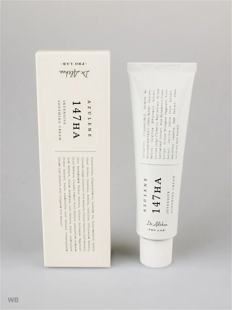 Успокаивающий крем с азуленом Azulene 147HA Intensive Soothing Cream направлен на успокоение и усиленную гидратацию кожи. Крем быстро снимает раздражение, убирает красноту, зуд и отек с воспалительных элементов, значительно уменьшает реактивность чувствительной кожи. Смягчает и питает эпидермис, насыщает его влагой, надолго сохраняет ее внутри. Также крем активно борется с воспалениями, способствует их скорейшему заживлению, запускает процессы регенерации. Крем имеет насыщенную текстуру бальзама, азулен обеспечивает легкий голубой оттенок. Хорошо распределяется по кожу и успокаивает практически мгновенно. Средство отлично подойдет: \- для сухой кожи; \- для чувствительной кожи; \- для раздраженной кожи\. Способ применения: нанесите небольшое количество крема на предварительно очищенную и тонизированную кожу лица или локально на необходимые участки кожи, слегка помассируйте, дайте впитаться.