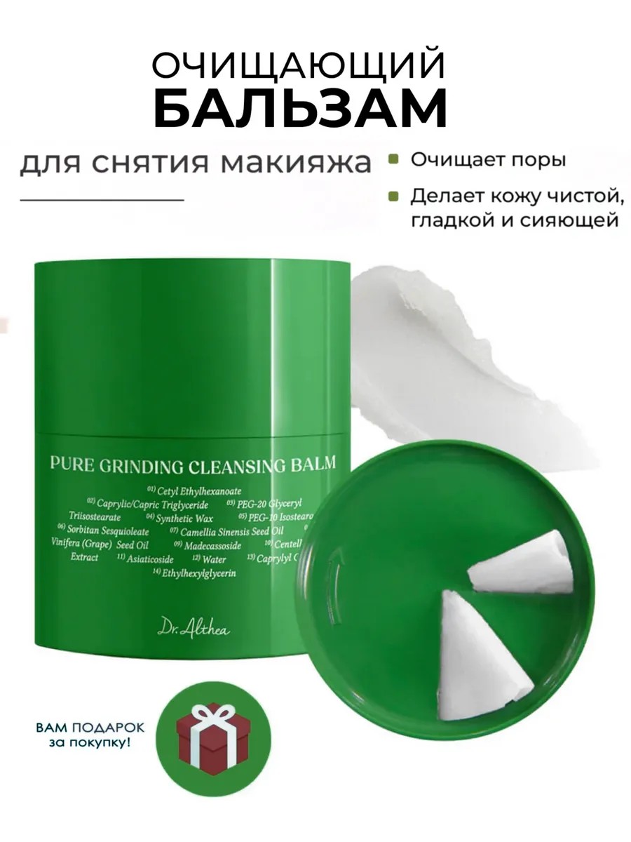 Althea Pure Grinding Cleansing Balm с минималистичным составом обеспечивает нежное и деликатное очищение без сухости и раздражения.