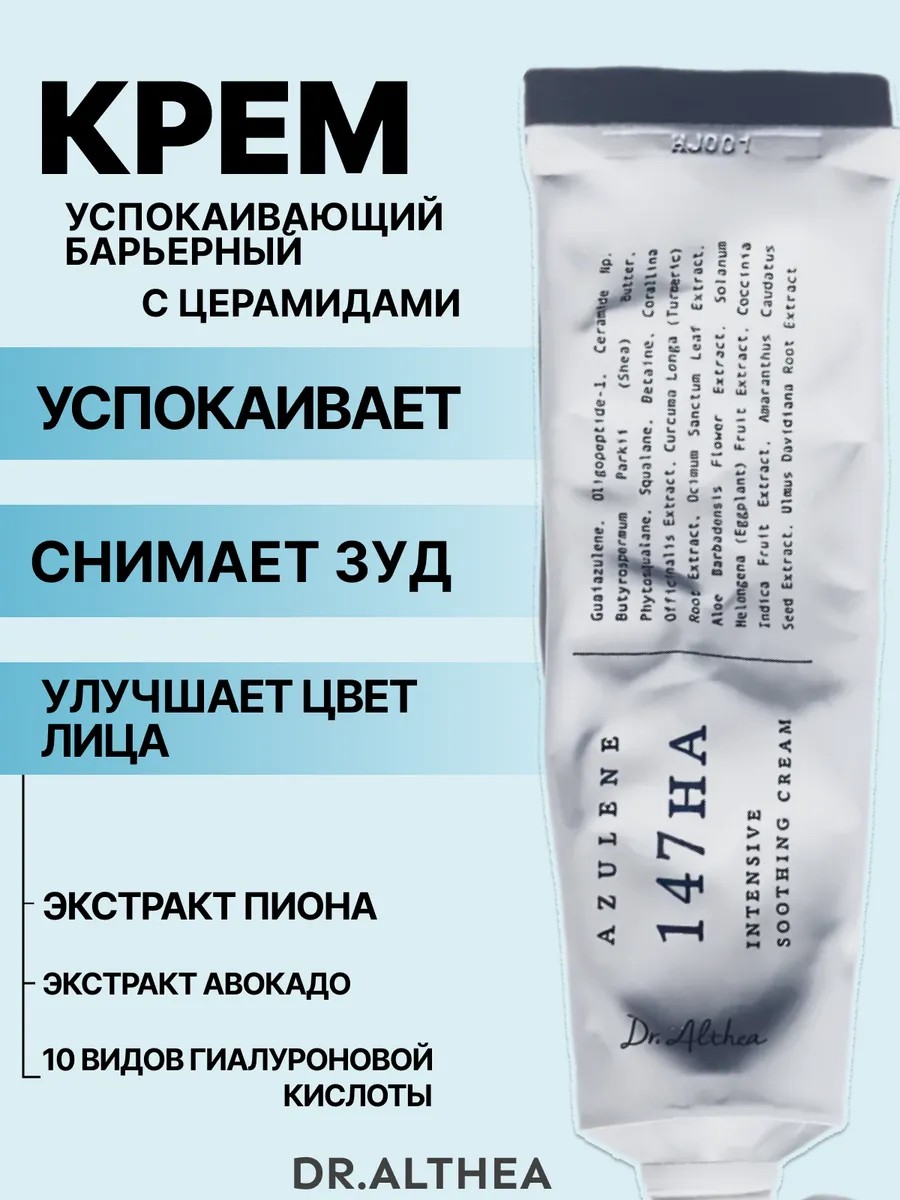 Успокаивающий крем Dr. Althea 147 Barrier Cream — интенсивно питающее средство. Мгновенно устраняет сухость и шелушение, восстанавливает липидный барьер и помогает сохранить влагу. Успокаивает, снимает зуд, раздражение и покраснение.