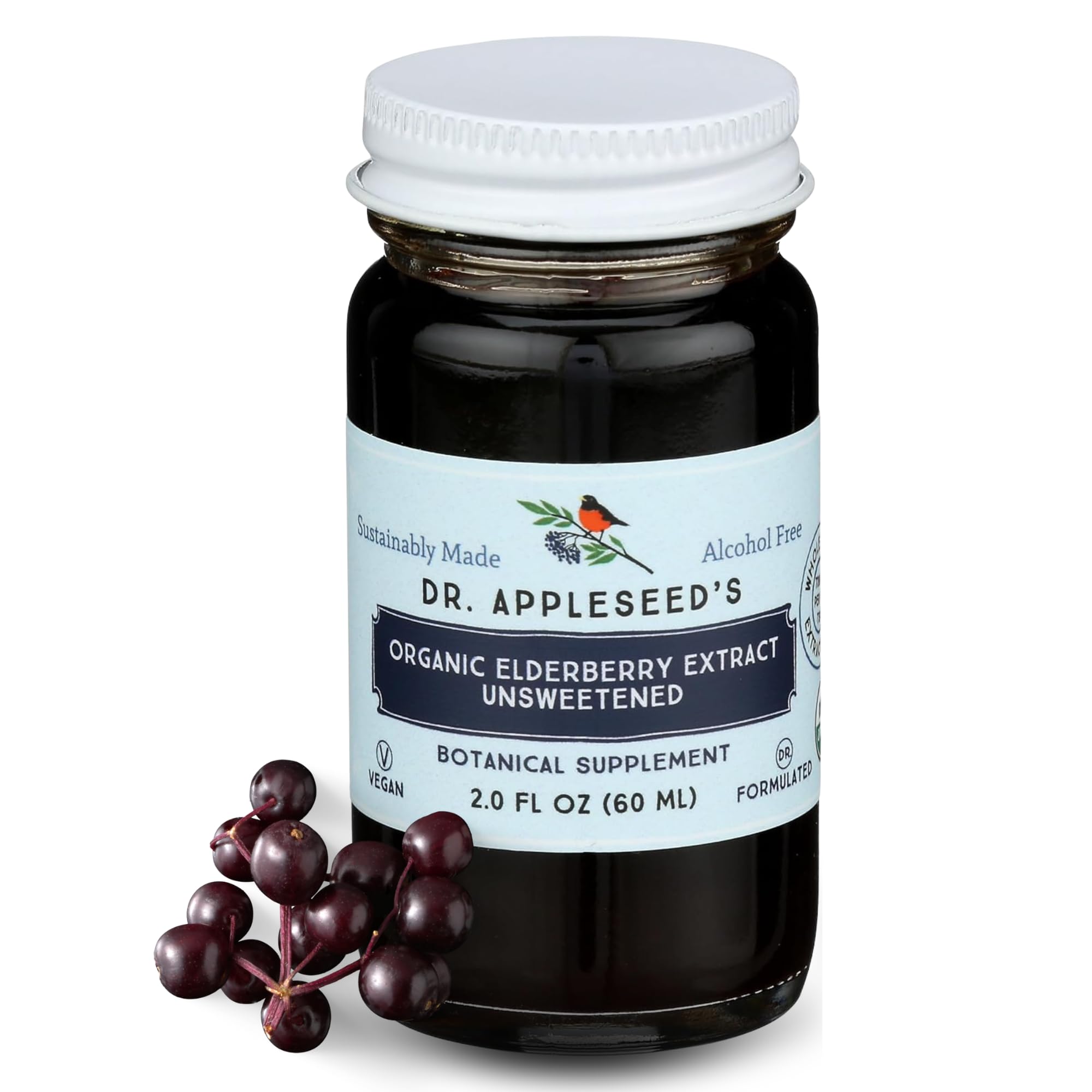 FOR KIDS AND ADULTS - Dr. Appleseed's Organic Elderberry Syrup is formulated for all ages. Children aged 2-4 years old can take 1 drop per 5 lbs bodyweight 1-3x daily (Example: 20 lb kiddo can take 4 drops). Children 5 years old can take ¼ teaspoon extract 1-3x daily. Anyone 75 lbs or over can take ½ teaspoon extract to 1 teaspoon extract 1-3x daily. This herbal wellness product offers easy-to-follow dosing for the entire family. Please use as directed. FRESH PURE - Unlike other brands, we use only fresh, hand-harvested elderberries from small farms within the United States. We avoid powdered, imported, dried, or hard-to-identify elderberries to maintain the highest quality standards in our elderberry health supplement. QUALITY YOU CAN TRUST - Our elderberry extract is meticulously crafted to ensure purity and quality. It's USDA Certified Organic, vegan, and paleo-friendly, with no gluten, alcohol, sugar, or glycerin. Only a handful of people handle our products, ensuring you receive the best in organic wellness. POWERFUL ANTIOXIDANTS - Each serving of this elderberry concentrate is packed with antioxidant-rich black elderberries, providing robust immune-boosting properties and overall health benefits. With 25 servings per bottle, it's a convenient and effective way to support holistic health. IMMUNE SUPPORT - Boost your body's natural defenses with Dr. Appleseed's Organic Elderberry Syrup. This science-backed wellness product offers potent elderberry benefits for immune system support, making it a great addition to your daily routine. This unsweetened elderberry extract is made with only two ingredients: elderberries and hibiscus. This higher concentrated formula is best for anyone who wants a higher potency, unsweet, and simple taste. This can be taken by the spoonful, drink straight, or added to drinks, teas, sauces, and salad dressings.