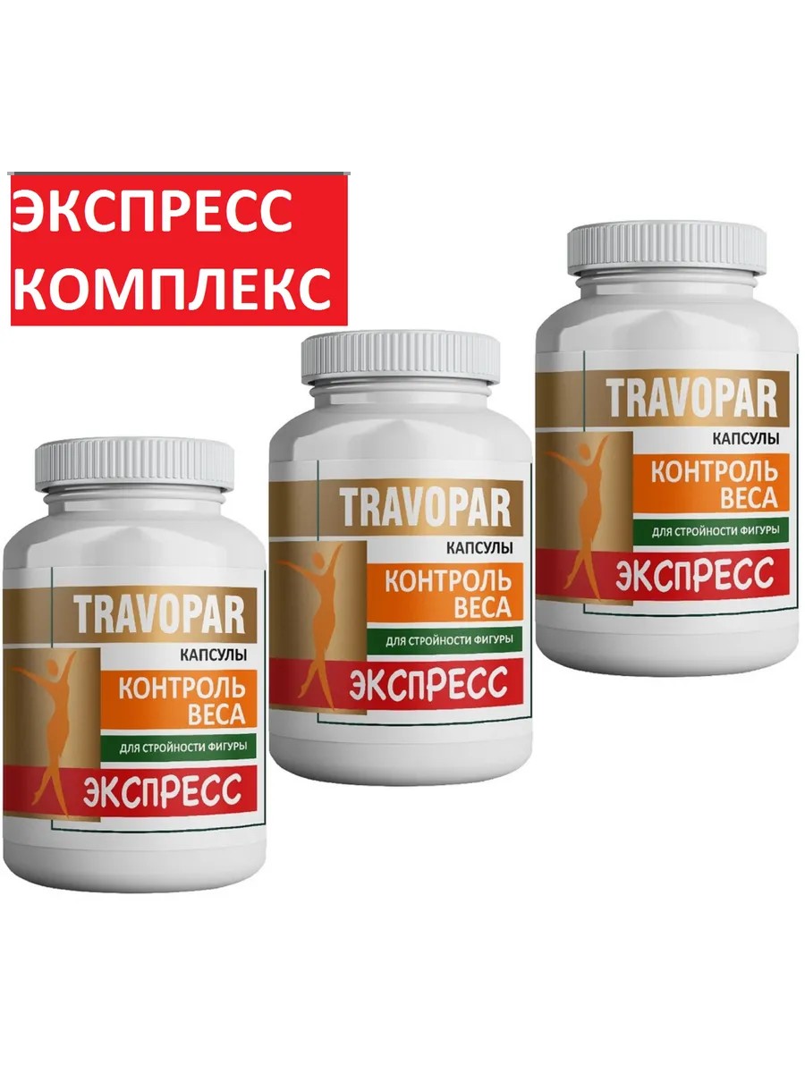 Комплекс «Контроль веса. экспресс TRAVOPAR содержит 60 капсул, которые помогут вашему организму быть здоровым. Каждая капсула содержит три комплекса натуральных компонентов, которые уменьшают аппетит, усиливают расщепление жиров и препятствуют всасыванию жиров и углеводов в кишечнике.