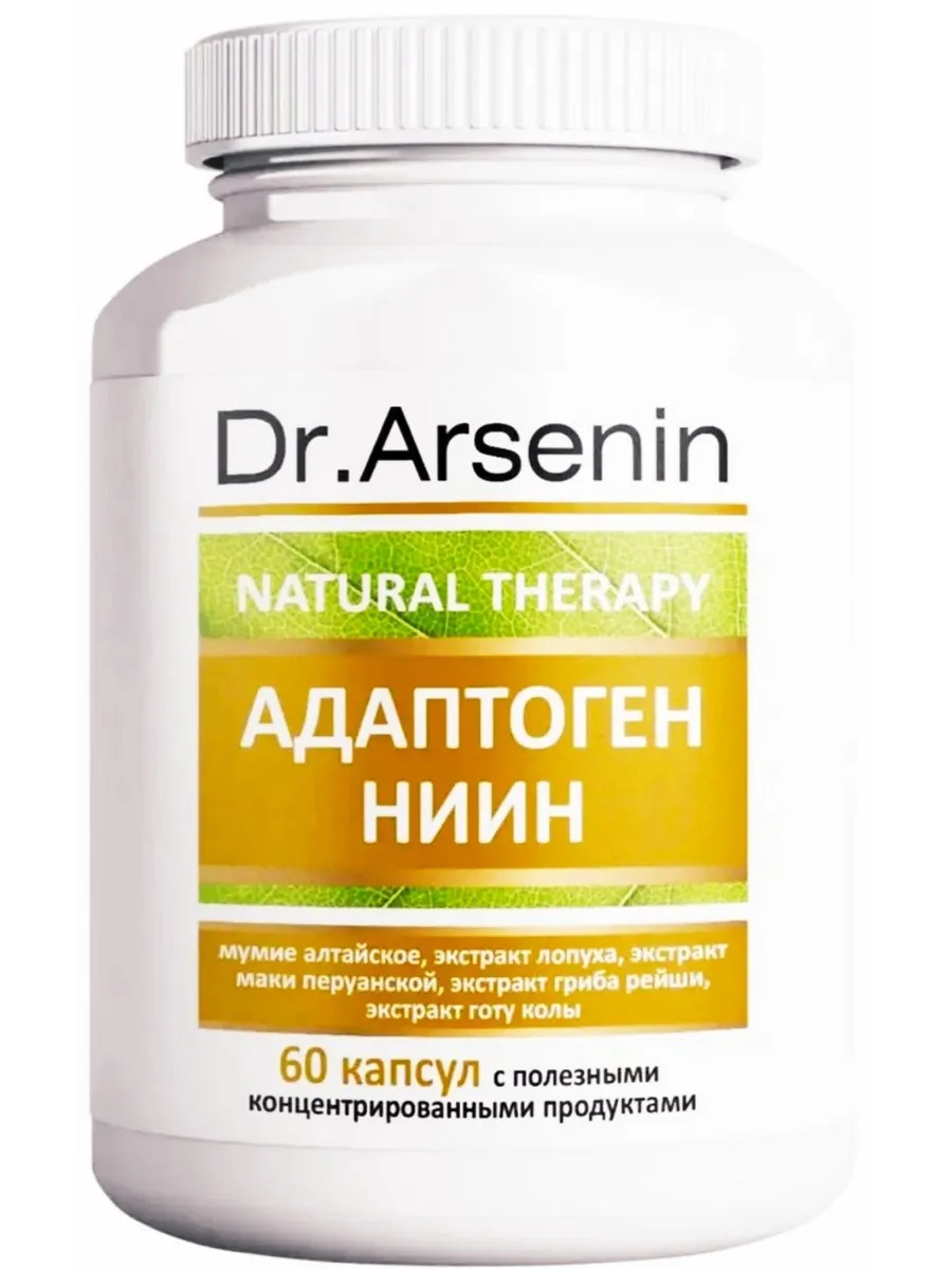 Dr. Arsenin АДАПТОГЕН НИИН быстро укрепит иммунитет, активизирует защитные силы вашего организма. Полезные концентрированные капсулы изготовлены на основе целебных природных компонентов, витаминов, минералов и ак тивных веществ, действие которых направлено на оптимизациюработы всех жизненно-важных органов и систем, поддержку иммунитета и укрепление здоровья в любом возрасте! Быть энергичным, целеустремлённым человеком с нормальным весом, здоровым сердцем и прекрасной памятью возможно в любом возрасте!
