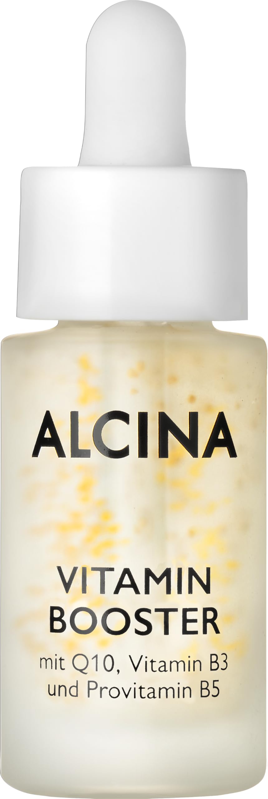 Alcina Vitamin Booster The vitamin booster refines the skin image, gives a healthy appearance and makes the skin visibly smooth. The gel-like texture feels pleasant on the skin and provides a well-groomed skin feeling and a natural, fresh appearance . Q10 protects the skin against free radicals and supports the energy supply of the skin cells. Provitamin B5 stimulates the formation of skin cells and promotes regeneration. Vitamin B3 regenerates the skin barrier and supports the formation of lipids and ceramides, which are essential for the skin's protective function. With coenzyme Q10. Coenzyme Q10 is a body's own enzyme and is present in every living cell. In the mitochondria, the "power plants of the cells", Q10 ensures that sufficient energy is available for healthy growth of skin and hair. The amount of body's own Q10 decreases with age. This slows down the energy flow and cell renewal rate. The result is sensitive skin, which is less protected against harmful environmental influences and free radicals. With provitamin B5. The powerful active ingredient provitamin B5 stimulates the formation of skin cells, so that the skin can regenerate faster. In addition, collagen formation is stimulated, which gives the skin structure and elasticity. With vitamin B3. Niacinamide, or vitamin B3, is an important component for the energy supply of the cells. It also has a large number of protective and skin structure-improving properties, for example it improves the skin barrier and the skin's moisture-binding capacity. Application test on 87 women between 30 and 70 years, 04 22 Usage: Distribute 2 to 3 drops on the face or mix with your Alcina facial cream directly before use on the hand. INGREDIENTS Ingredients: AQUA, NIACINAMIDE, penTYLENE GLYCOL, GLYCERIN, PANTHENOL, MANNITOL, HYDROXYACETOPHENONE, MICROCRYSTALLINE CELLULOSE, 1,2-HEXANEDIOL, YLYL GLYCOL, CARBOMER, PEG-40 HYDROGENATCAED STOR OIL, Sodium Hyaluronate, trideceth-9, squalane, propylene glycol, algin, ubiquinone, perfume, tetramethyl acetyloctahydrainaphthalene, CI 77492.Versatile in use: The Alcina Vitamin Booster can be easily combined with the daily facial cream or used alone to intensify skin care individually. Ideal for all skin types and care needs. Essential skin care: specially developed for mature skin, the Alcina Vitamin Booster counteracts the signs of skin aging and provides firmer and radiant skin. It reduces wrinkles and provides a fresh look. Regeneration and protection – provitamin B5 promotes skin cell renewal and collagen formation, while vitamin B3 strengthens the skin barrier and sustainably improves the skin structure – for healthy, radiant and resistant skin. Innovative effect - The gel-like texture of the vitamin booster contains coenzyme Q10, which promotes the energy supply of the skin cells and effectively protects them against aging processes and environmental influences. Safely smooth skin: the Alcina vitamin booster, enriched with Q10, vitamin B3 and provitamin B5, refines the skin image, gives a healthy appearance and visibly smoothes the skin for a youthful radiance.ALCINA Vitamine Booster – 1 x 15 ml – voor een gezonde, zichtbaar glad uiterlijk – geconcentreerd gezichtsserum met Q10, vitamine B3 en provitamine B5 Alcina Vitamine Booster De vitamine booster verfijnt het huidbeeld, geeft een gezonde uitstraling en maakt de huid zichtbaar glad. De gelachtige textuur voelt aangenaam aan op de huid en zorgt voor een verzorgd huidgevoel en een natuurlijke, frisse uitstraling . Q10 beschermt de huid tegen vrije radicalen en ondersteunt de energievoorziening van de huidcellen. Provitamine B5 stimuleert de vorming van huidcellen en bevordert de regeneratie. Vitamine B3 regenereert de huidbarrière en ondersteunt de vorming van lipiden en ceramiden, die essentieel zijn voor de beschermende functie van de huid. Met co-enzym Q10. Het co-enzym Q10 is een lichaamseigen enzym en aanwezig in elke levende cel. In de mitochondriën, de "energiecentrales van de cellen", zorgt Q10 ervoor dat er voldoende energie beschikbaar is voor een gezonde groei van huid en haar. Met de leeftijd neemt de hoeveelheid lichaamseigen Q10 af. Dit vertraagt de energiestroom en de celvernieuwingssnelheid. Het resultaat is een gevoelige huid, die minder beschermd is tegen schadelijke milieu-invloeden en vrije radicalen. Met provitamine B5. De krachtige werkzame stof provitamine B5 stimuleert de vorming van huidcellen, zodat de huid sneller kan regenereren. Daarnaast wordt de collageenvorming gestimuleerd, die de huid structuur en elasticiteit geeft. Met vitamine B3. Niacinamide of vitamine B3, is een belangrijk onderdeel voor de energievoorziening van de cellen. Het heeft bovendien een groot aantal beschermende en de huidstructuur verbeterende eigenschappen, bijvoorbeeld verbetert het de huidbarrière en het vochtbindend vermogen van de huid. Toepassingstest bij 87 vrouwen tussen 30 en 70 jaar, 04 22 Gebruik: 2 tot 3 druppels op het gezicht verdelen of direct voor gebruik op de hand met je Alcina gezichtscrème mengen. INGREDIËNTEN Ingrediënten: AQUA, NIACINAMIDE, penTYLENE GLYCOL, GLYCERINE, PANTHENOL, MANNITOL, HYDROXYACETOFENONE, MICROCRYSTALLINE CELLULOSE, 1,2-HEXANEDIOL, YLYL GLYCOL, CARBOMER, PEG-40 HYDROGENATCAED STOR OIL, Natriumhyaluronaat, trideceth-9, squalan, propyleen glycol, algin, ubiquinone, parfum, tetramethyl acetyloctahydrainafthalen, CI 77492.Veelzijdig te gebruiken: de Alcina Vitamine Booster kan gemakkelijk met de dagelijkse gezichtscrème worden gecombineerd of alleen worden gebruikt om de huidverzorging individueel te intensiveren. Ideaal voor alle huidtypes en verzorgingsbehoeften. Essentiële huidverzorging: speciaal ontwikkeld voor de rijpe huid, werkt de Alcina Vitamine Booster de tekenen van huidveroudering tegen en zorgt voor een stevigere en stralende huid. Het vermindert rimpels en zorgt voor een frisse look. Regeneratie en bescherming – provitamine B5 bevordert de huidcelvernieuwing en de collageen