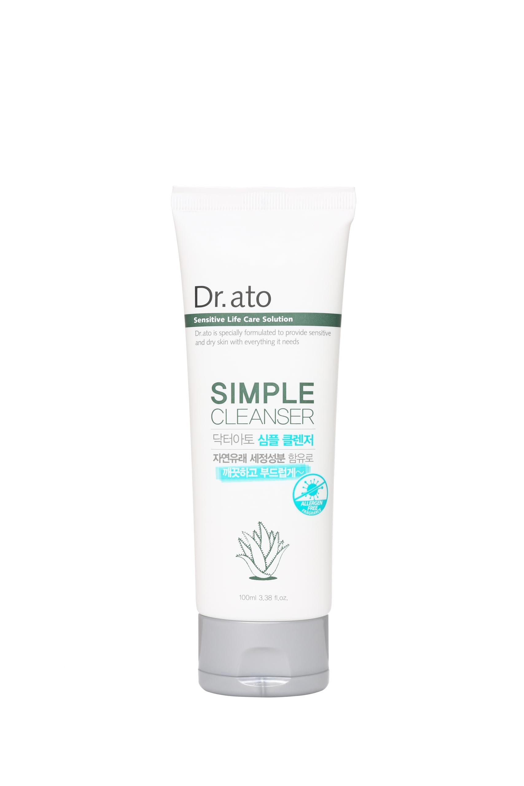 Dr.ato Simple Cleanser for Dry and Sensitive Skin - Hypoallergenic Naturally Derived Ingredients Moisturizing and Soothing Korean Skincare (3.38 Fl Oz)
