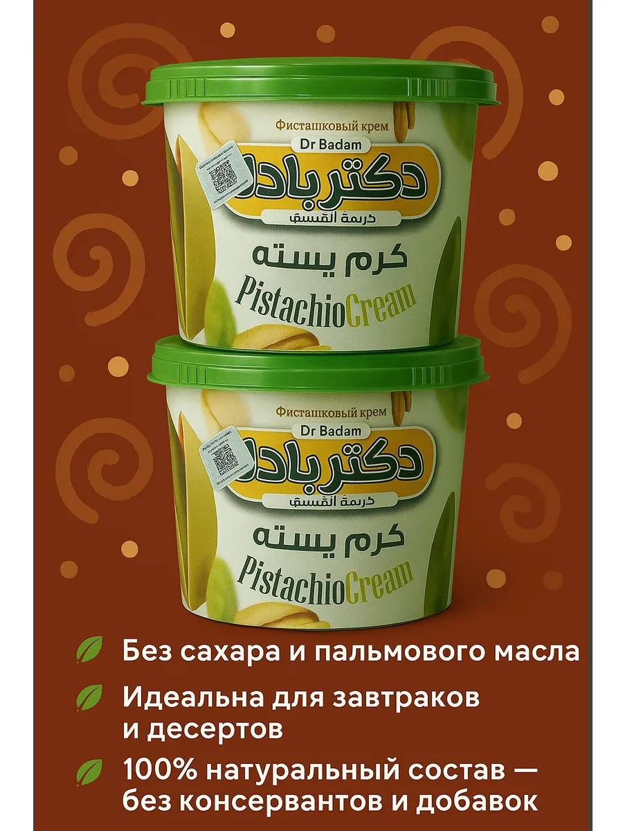 Dr Badam Фисташковая паста без сахара, 2 банки по 270 г, натуральная