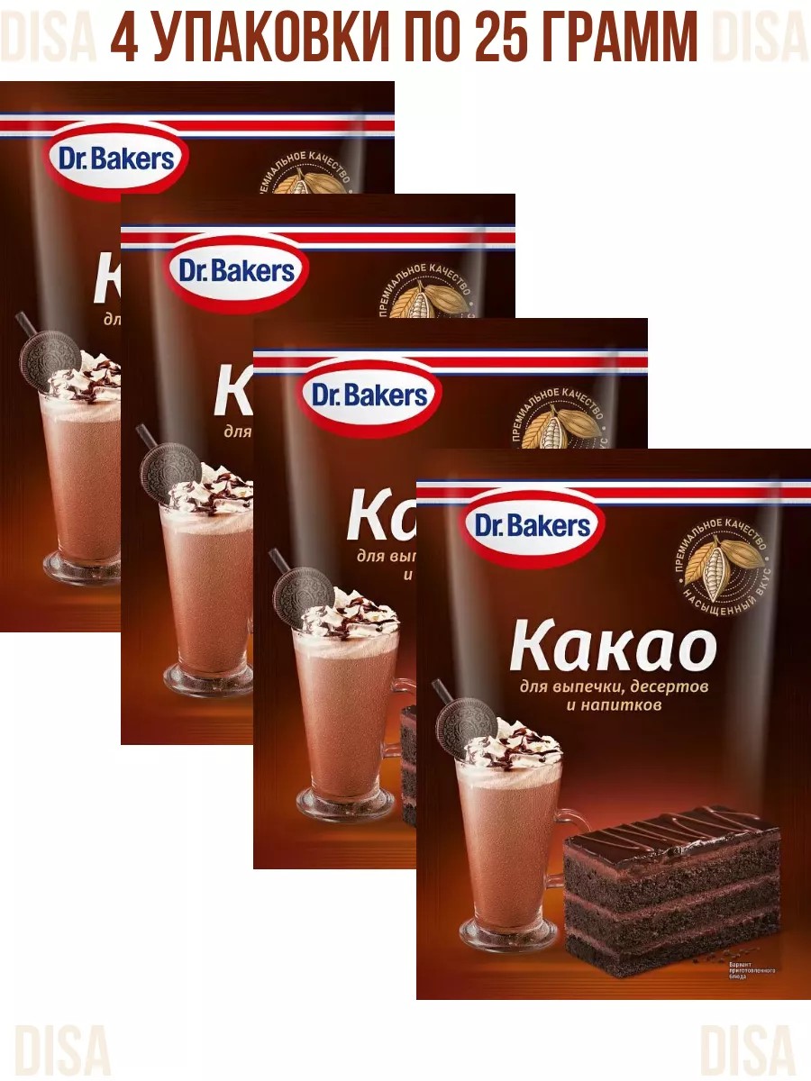 Dr.Bakers Какао-порошок для выпечки, десертов и напитков, 4шт. по 25г