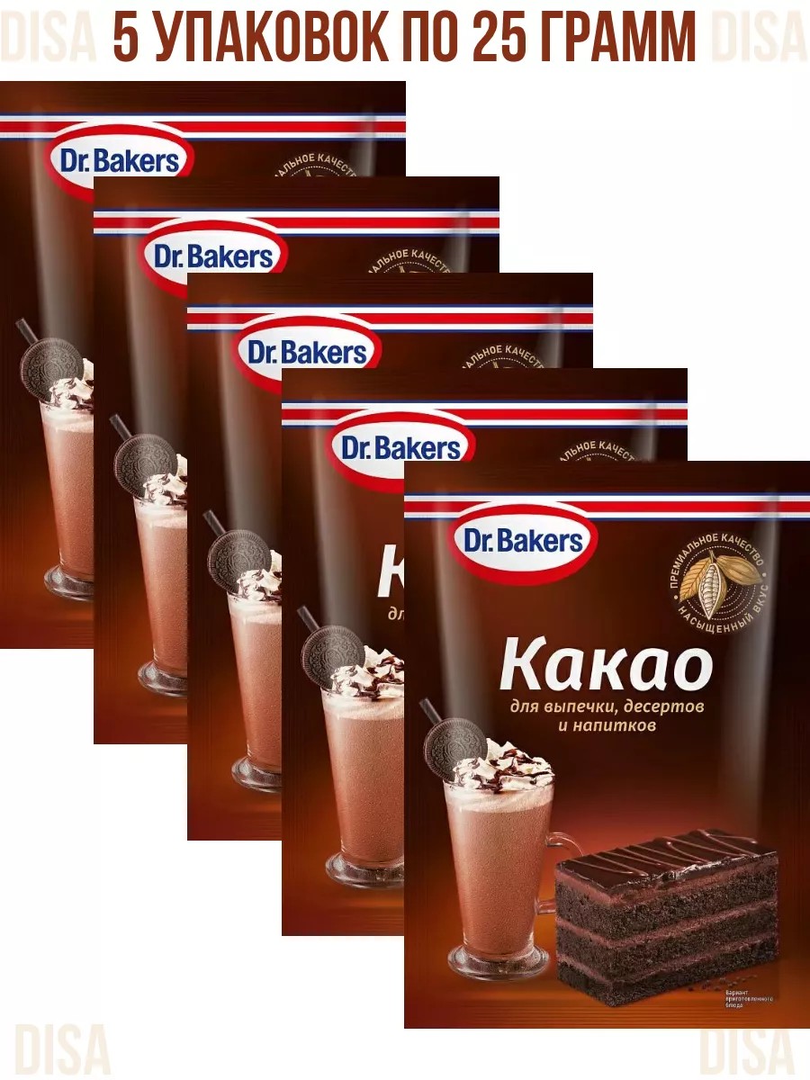 Dr.Bakers Какао-порошок для выпечки, десертов и напитков, 5шт. по 25г