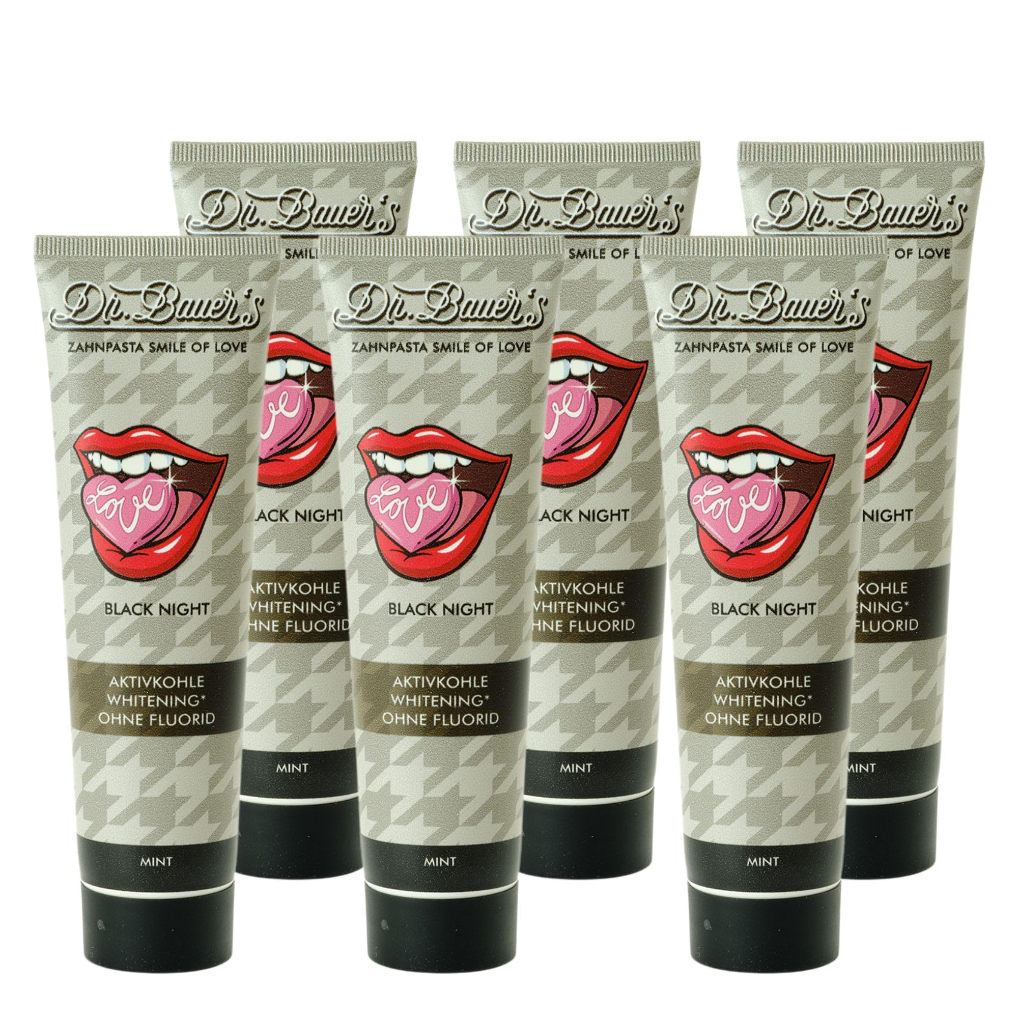 Discover powerful yet gentle dental care with Dr. Bauer's Smile of Love toothpaste. This unique toothpaste has been specially formulated to give your smile a natural shine. With an innovative combination of activated charcoal and refreshing mint, it not only effectively removes stains but also leaves your mouth feeling incredibly fresh. The activated charcoal in Smile of Love Black Night toothpaste is known for its absorbent properties. It absorbs impurities and discoloration caused by coffee, tea, red wine, or other food and drink products, gently removing them from the surface of your teeth. It is so gentle that your enamel remains protected, and you don't have to worry about sensitive teeth. At the same time, the natural mint ensures fresh breath and a clean feeling in your mouth that lasts all day. Another benefit of this toothpaste is its fluoride-free formula. Many people are looking for alternatives to fluoride toothpastes, whether due to intolerances or because they deliberately want to avoid certain ingredients. Smile of Love Black Night offers just that alternative without compromising on effective dental care. It's free of microplastics and other unnecessary chemicals, making it not only a healthy choice for you but also an environmentally friendly one. The toothpaste is ideal for daily use, but it's especially recommended for nighttime. After a long day, it helps remove impurities and care for your teeth overnight. For complete dental health, dentists recommend alternating fluoride-free toothpastes with fluoride-containing varieties to ensure optimal protection against cavities. In addition to its effectiveness, Dr. Bauer's Smile of Love Black Night toothpaste also impresses with its sustainable packaging. It's free of unnecessary plastic and instead relies on eco-friendly materials that are both environmentally conscious and stylish in the bathroom. Whether you want to get rid of stains caused by enjoying coffee or tea, or you're simply looking for a natural and refreshing toothpaste, Smile of Love Black Night is the perfect choice. It combines effectiveness, natural ingredients, and sustainability in one product, allowing you to enjoy your bright smile every day. Discover the combination of gentle teeth whitening and refreshing care with Dr. Bauer's Smile of Love Black Night toothpaste and see for yourself the difference natural dental care can make. Your smile will thank you. INGREDIENTS Sorbitol, calcium phosphate, water, hydrated silica, C14-C16 sodium olefin sulfonate, xylitol, bentonite, charcoal powder, potassium chloride, tetrapotassium pyrophosphate, sodium monofluoride phosphate, cellulose, sodium hydroxide, sodium hexamethaphosphate, aloe barbadensis leaf extract, sucrassis, aescin, papain, bromelain, menthyl lactate, thymol, zinc chloride.Free from titanium dioxide, fluoride, and microplastics: Natural whitening toothpaste for healthy, strong teeth, safe and free from harmful additives. DEVELOPED AND PRODUCED IN GERMANY: Sustainable toothpaste, manufactured to the highest quality standards – vegan, cruelty-free, and environmentally friendly. TEETH CARE: The gentle toothpaste with natural ingredients protects teeth and gums from irritation. Long-lasting fresh breath overnight: The whitening toothpaste effectively neutralizes bad breath and ensures a clean, fresh feeling. Activated charcoal toothpaste for whiter teeth: Gently removes stains caused by coffee, tea, and nicotine for a naturally bright smile.Dr. Bauer's Smile of Love Black Night Lot de 6 dentifrices sans fluorure avec charbon actif et menthe pour un blanchiment doux des dents 90 mlDESCRIPTION DU PRODUIT DESCRIPTION DU PRODUIT Découvrez un soin dentaire puissant et doux avec le dentifrice Dr. Bauer's Smile of Love. Ce dentifrice unique a été spécialement conçu pour faire briller votre sourire de manière naturelle. Avec une combinaison innovante de charbon actif et de menthe rafraîchissante, il assure non seulement une élimination efficace des taches, mais laisse également une sensation de fraîcheur incomparable en bouche. Le charbon actif contenu dans le dentifrice Smile of Love Black Night est connu pour ses propriétés absorbantes. Il absorbe les impuretés et les décolorations causées par le café, le thé, le vin rouge ou d'autres produits alimentaires et de plaisir, et les élimine en douceur de la surface des dents. Il est si doux que l'émail reste protégé et vous n'avez pas à vous soucier des dents sensibles. En même temps, la menthe naturelle assure une haleine fraîche et une sensation de propreté en bouche qui vous accompagne tout au long de la journée. Un autre avantage de ce dentifrice est sa formule sans fluorure. Beaucoup de gens recherchent des alternatives aux dentifrices contenant du fluor, que ce soit en raison d'intolérances ou parce qu'ils veulent délibérément renoncer à certains ingrédients. Le Smile of Love Black Night offre exactement cette alternative sans avoir à renoncer à des soins dentaires efficaces. Il est exempt de microplastiques et d'autres produits chimiques inutiles, ce qui en fait un choix sain pour vous, mais aussi un choix respectueux de l'environnement. Le dentifrice est idéal pour un usage quotidien, mais il est particulièrement recommandé pour le soir. Après une longue journée, il aide à éliminer les impuretés et à prendre soin de vos dents pour la nuit. Pour une santé dentaire complète, les dentistes recommandent d'utiliser des dentifrices sans fluorure en alternance avec des variantes contenant du fluor pour assurer une protection optimale contre les caries. En plus de son effet, le dentifrice Dr. Bauer's Smile of Love Black Night convainc également par son emballage durable. Il est sans plastique superflu et s'appuie plutôt sur des matériaux respectueux de l'environnement qui sont à la fois respectueux de l'environnement et élégants dans la salle de bain. Que vous souhaitiez vous débarrasser de la décoloration c