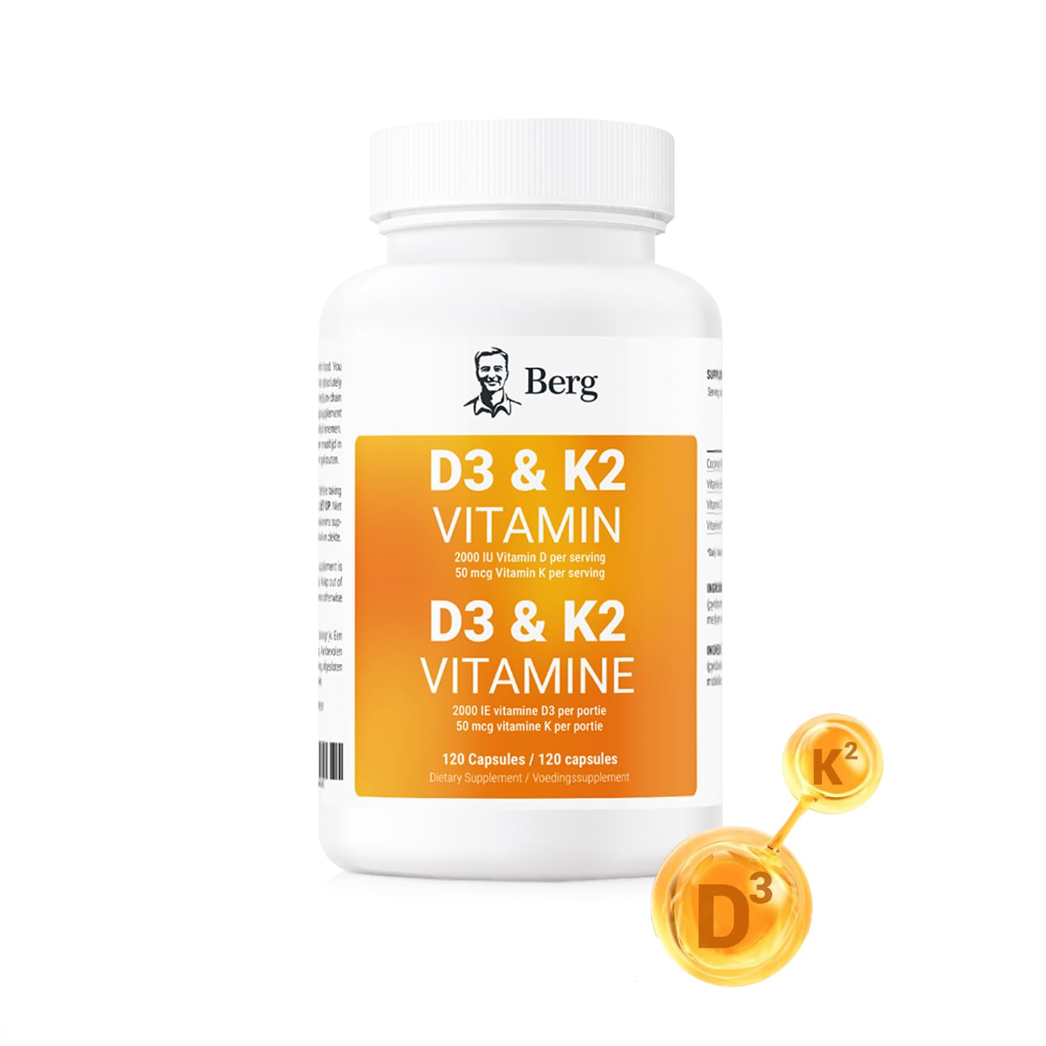 ✓ 120 DAY SUPPLY: With 120 capsules per bottle, this Vitamin D3 K2 supplement provides a full 4-month supply, taking just 1 easy-to-swallow capsule per day. ✓ YEAR-ROUND VITAMIN D SUPPORT: While Vitamin D is synthesized by the skin when exposed to sunlight and found in foods like fatty fish, mushrooms, and eggs, maintaining adequate levels through diet alone can be challenging. Supplementation can help ensure sufficient Vitamin D intake throughout the year. ✓ WHY WE ARE DIFFERENT: E. Berg has dedicated years of research exploring nutrition and health. With a focus on a holistic approach, he has developed formulations based on his years of research. This experience has guided the creation of these high-quality products that reflect his dedication to quality and research-based nutrition. ✓ OPTIMIZED VITAMIN D3 K2 FORMULA: Support for Normal Bone and Immune Health. This formula delivers 2,000 IU of Vitamin D3 and 50 mcg of Vitamin K2 MK-7 to maintain normal bone health and immune function. Vitamin D3 contributes to normal calcium absorption, while Vitamin K2 helps maintain normal bones. With added Vitamin B6 to support normal energy-yielding metabolism, this blend provides essential nutrients in a carefullly created formula.Berg Vitamin D3 K2 w MCT - Includes 2,000 IUs of D3 50 mcg MK7 K2-120 Count✓ 120 DAY SUPPLY: With 120 capsules per bottle, this Vitamin D3 K2 supplement provides a full 4-month supply, taking just 1 easy-to-swallow capsule per day. ✓ YEAR-ROUND VITAMIN D SUPPORT: While Vitamin D is synthesized by the skin when exposed to sunlight and found in foods like fatty fish, mushrooms, and eggs, maintaining adequate levels through diet alone can be challenging. Supplementation can help ensure sufficient Vitamin D intake throughout the year. ✓ WHY WE ARE DIFFERENT: E. Berg has dedicated years of research exploring nutrition and health. With a focus on a holistic approach, he has developed formulations based on his years of research. This experience has guided the creation of these high-quality products that reflect his dedication to quality and research-based nutrition. ✓ OPTIMIZED VITAMIN D3 K2 FORMULA: Support for Normal Bone and Immune Health. This formula delivers 2,000 IU of Vitamin D3 and 50 mcg of Vitamin K2 MK-7 to maintain normal bone health and immune function. Vitamin D3 contributes to normal calcium absorption, while Vitamin K2 helps maintain normal bones. With added Vitamin B6 to support normal energy-yielding metabolism, this blend provides essential nutrients in a carefullly created formula.