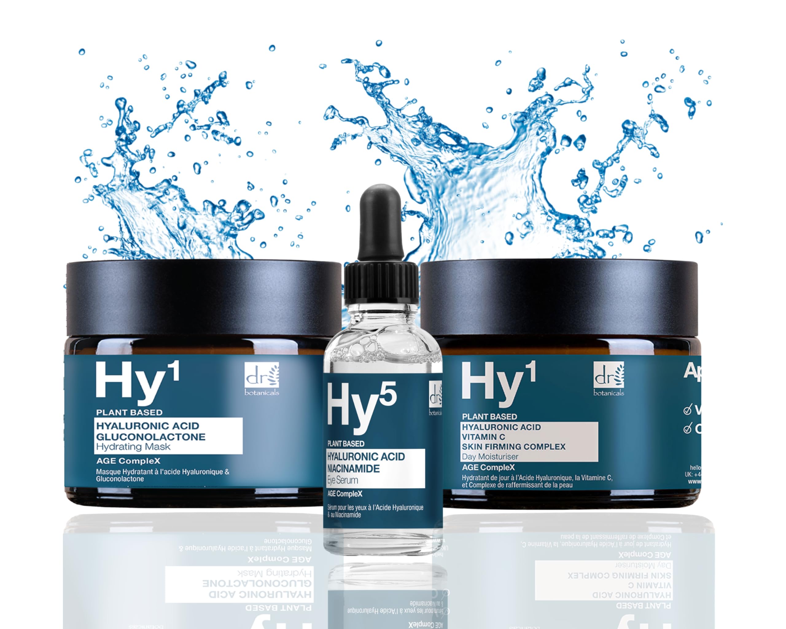 Daytime Moisturizer for Radiant Skin: Achieve a firmer, brighter complexion with our complex daytime moisturizer formulated with hyaluronic acid, vitamin C, and a skin-firming complex. The expert-approved formula brightens your natural skin tone, softens fine lines, and delivers intense hydration for a plump, smooth appearance. The Powerhouse trio of ingredients lifts, firms, and rejuvenates skin for a visibly refreshed, timeless glow. Hyaluronic Acid Gluconolactone Mask: Transform tired skin with our hyaluronic acid gluconolactone mask. Clinically proven anti-aging formula that reduces the appearance of fine lines and wrinkles. Plumps skin with increased hydration and gently exfoliates for smoother, healthier-looking skin. Powerful Eye Serum: Our eye serum with hyaluronic acid and niacinamide revitalizes your skin for a more youthful and radiant appearance. 5 hyaluronic acid reduces the appearance of wrinkles, while 5 niacinamide targets enlarged pores. The addition of lactic acid exfoliates the skin, improving texture for a smoother, healthier complexion.Professional Skincare Results: Trust clinically proven formulas designed to deliver real results. Our skincare line is expertly crafted to address your skin's unique needs, offering the ultimate solution for a smoother, brighter complexion. Expert-Approved Formula: Our products feature a trio of powerful ingredients that work together to lift, firm, and rejuvenate your skin. Say goodbye to dullness and hello to a visibly refreshed, timeless glow. Youthful Eye Revitalization: Rejuvenate tired eyes with our Hyaluronic Acid Niacinamide Eye Serum. Formulated with 5 Hyaluronic Acid and 5 Niacinamide, it diminishes wrinkles and minimizes pores for a more youthful appearance. Lactic Acid gently exfoliates, revealing smoother, healthier-looking skin. Clinically proven anti-aging: Renew your skin with our hyaluronic acid and gluconolactone mask. This powerful blend reduces wrinkles, boosts moisture, and gently exfoliates for smoother, healthier-looking skin. Transform tired skin into a youthful glow. Intense hydration and brightening: Discover a firmer, more radiant complexion with our complex day moisturizer with hyaluronic acid, vitamin C, and skin-nourishing ingredients. This expert formula deeply hydrates, softens fine lines, and enhances your skin's natural radiance.Dr Botanicals Hydratant de jour à l'acide hyaluronique, sérum pour les yeux et masque facial Cible les ridules et les rides – Hydratation intense pour une peau lisse – Raffermit et raffermit la peauDESCRIPTION DU PRODUIT Hydratant de jour pour une peau lumineuse : Adoptez un teint plus ferme et plus lumineux avec notre hydratant de jour complexe complexe à l'acide hyaluronique, à la vitamine C et au complexe raffermissant pour la peau. La formule approuvée par des experts illumine votre teint naturel, adoucit les ridules et offre une hydratation intense pour une apparence repulpée et lisse. Le trio d'ingrédients Powerhouse soulève, raffermit et rajeunit la peau pour un éclat visiblement rafraîchi et intemporel. Masque à l'acide hyaluronique et à la gluconolactone : Transformez la peau fatiguée avec notre masque à l'acide hyaluronique et à la gluconolactone. Formule anti-âge cliniquement prouvée qui réduit les rides et ridules. Repulpe la peau avec une hydratation accrue et exfolie doucement pour une peau plus lisse et plus saine. Sérum puissant pour les yeux : Notre sérum contour des yeux à l'acide hyaluronique et à la niacinamide revitalise votre peau pour une apparence plus jeune et radieuse. 5 d'acide hyaluronique réduit l'apparence des rides, tandis que 5 de niacinamide cible les pores dilatés. L'ajout d'acide lactique exfolie la peau, améliorant la texture pour un teint plus lisse et plus sain.Résultats professionnels des soins de la peau : faites confiance à des formules cliniquement prouvées conçues pour fournir de vrais résultats. Notre ligne de soins de la peau est habilement conçue pour répondre aux besoins uniques de votre peau, offrant la solution ultime pour un teint plus lisse et plus lumineux. Formule approuvée par les experts : nos produits disposent d'un trio d'ingrédients puissants qui travaillent en synergie pour soulever, raffermir et rajeunir votre peau. Dites adieu à la ternité et bonjour à une lueur visiblement rafraîchie et intemporelle. Revitalisation des yeux jeune : rajeunissez les yeux fatigués avec notre sérum contour des yeux à l'acide hyaluronique et à la niacinamide. Formulé avec 5 d'acide hyaluronique et 5 de niacinamide, il diminue les rides et minimise les pores pour une apparence plus jeune. L'acide lactique exfolie en douceur, révélant une peau plus lisse et plus saine. Anti-âge cliniquement prouvé : renouvelez votre peau avec notre masque à l'acide hyaluronique et à la gluconolactone. Ce mélange puissant réduit les rides, augmente l'humidité et exfolie doucement pour une peau plus lisse et plus saine. Transformez la peau fatiguée en un éclat jeune. Hydratation intense et éclaircissante : découvrez un teint plus ferme et plus éclatant avec notre hydratant de jour complexe complexe à l'acide hyaluronique, à la vitamine C et à la peau. Cette formule experte hydrate en profondeur, adoucit les ridules et améliore l'éclat naturel de votre peau.
