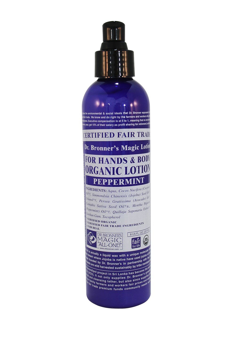 Dr. Bronner's & All-One Organic Lotion for Hands & Body Peppermint 8-Ounce Pump Bottles (Pack of 2)
