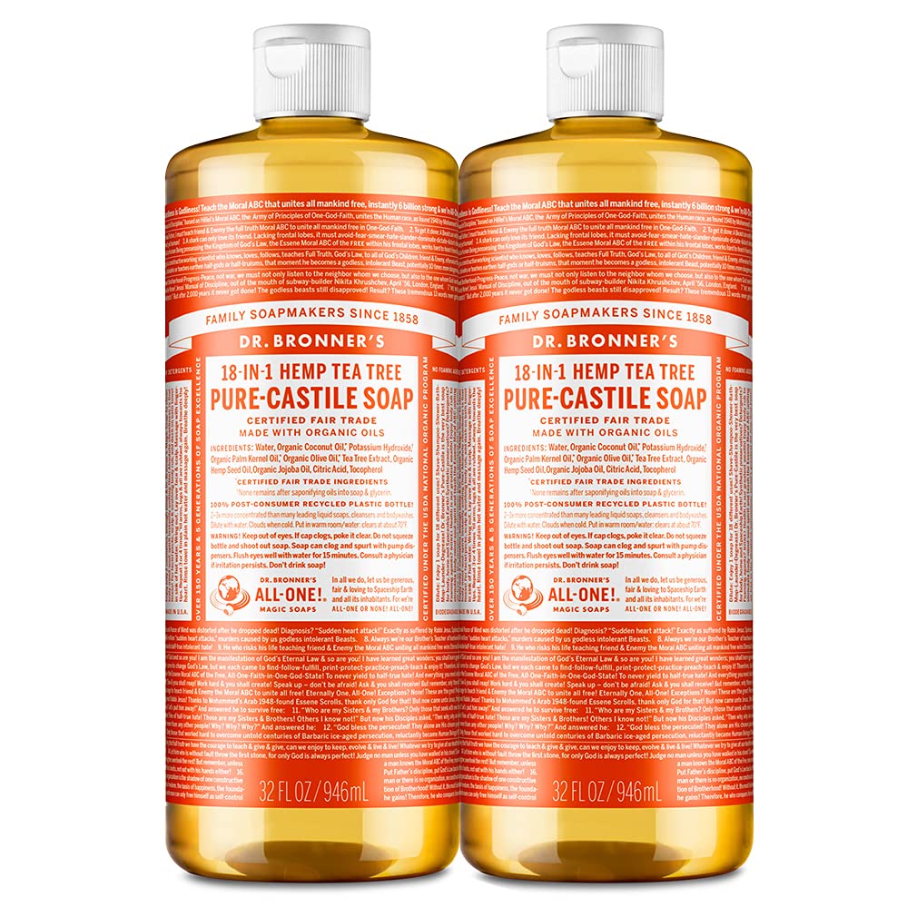 Dr. Bronner's Pure-Castile Liquid Soap Tea Tree Bundle. 32 oz. Bottle and 2 oz. Travel Bottle