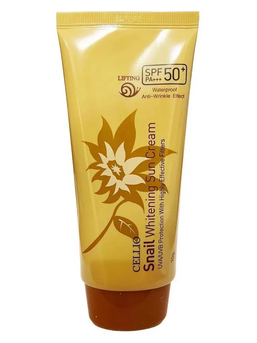 Солнцезащитный крем Dr. CELLIO для лица, с муцином улитки, 70 г. Антипигментационный солнцезащитный крем с улиточной слизью защищает кожу от ультрафиолетовых лучей в течение нескольких часов. Имеет водостойкую формулу, которая устойчива так же к поту и кожному салу. Поддерживает яркость тона кожи, возможно использование крема вместо базы под макияж. Способ применения: на последнем этапе ухода за кожей, за 30 минут до выхода на солнце равномерно нанести и дать впитаться. Уменьшение количества крема или неравномерное распределение значительно снизит уровень защиты. Не рекомендуется долгое нахождение на солнце, даже при использовании солнцезащитного крема. Объем: 70; Состав: Water, Cyclomethicone, Titanium Dioxide, Butylene Glycol, Caprylic / Capric Triglyceride, Propylene Glycol, Ethylhexyl Methoxycinnamate, Cetyl PEG / PPG - 10 / 1 Dimethicone, 4 - Methylbenzylidene Camphor, Zinc oxide, Mineral Oil, Sorbitan olivate, Microcrystalline wax, Butyrospermum Parkii (Shea) Butter, Snail Secretion Filtrate, Dimethicone, CI 77492, Sodium Hyaluronate, Magnesium Sulfate, Beeswax, CI 77491, CI 77499, Allantoin, Betaine, Sodium chloride, Glyceryl Caprylate, Caprylyl Glycol, Tocopheryl Acetate, Camellia Sinensis Leaf Extract, Morus Alba Bark Extract, Disodium EDTA, Fragrance; Срок годности: 24; Область использования: Лицо; Тип кожи: Для всех типов кожи;