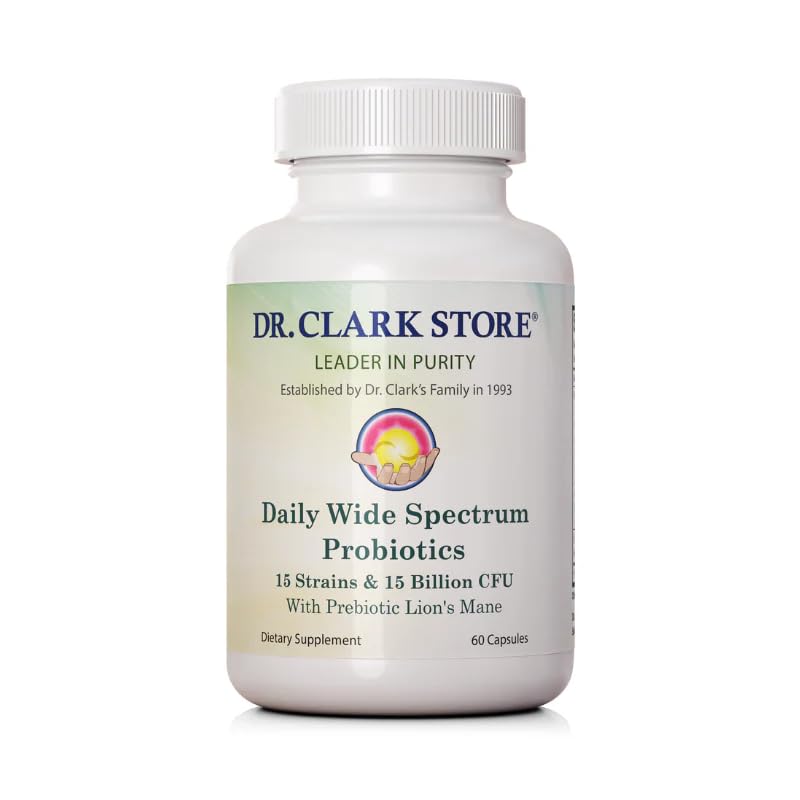 Trusted Since 1993: Backed by 30 years of herbal wellness expertise from Dr. Clark Store – over 10 million bottles produced with full quality control. Clean, Pure, Lab-Tested: Manufactured in-house with zero magnesium stearate, surfactants, or hidden fillers. Verifiable GMP-certified for your safety. 15 Billion CFU Per Capsule: Delivers high-strength probiotics in each serving to promote digestive comfort, immune function, and overall gut health. With Lion's Mane Mushroom Prebiotic: Supports a healthy gut microbiome and inflammation control, while feeding good bacteria to thrive. 15 Potent Probiotic Strains: Includes Lactobacillus Bifidobacterium strains to support digestive balance, nutrient absorption, and gut lining protection.