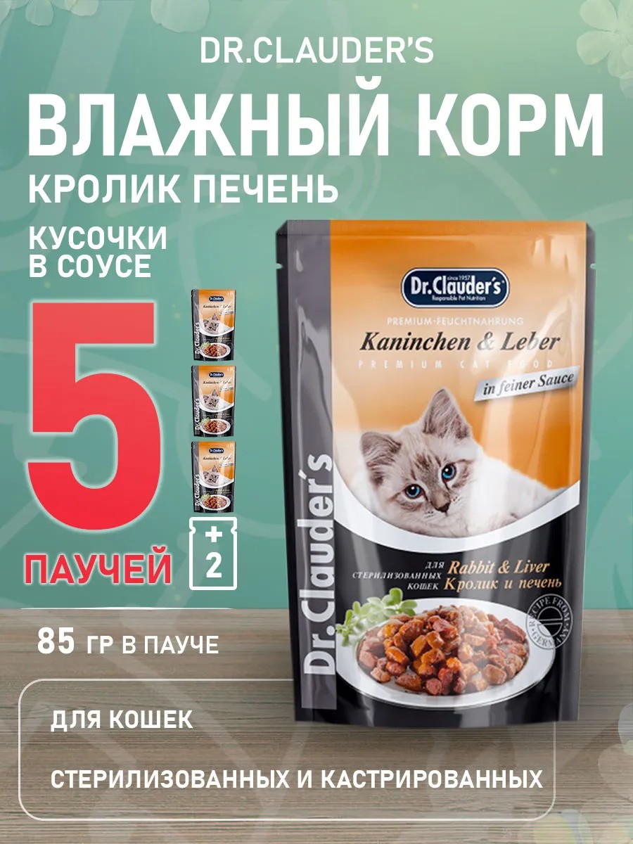Dr.Clauder`s Корм влажный для стерилизованных кошек кролик 85 г 5 шт