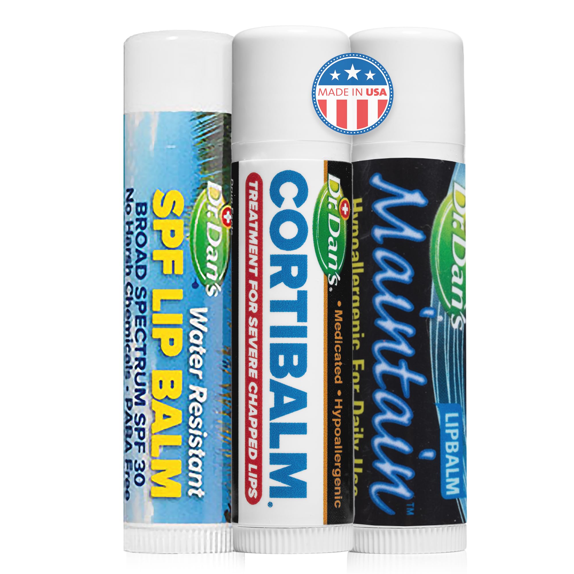 Dr. Dan's Complete Lip Care Kit - SunScreen SPF 30 CortiBalm for Chapped Lips and Maintain Balm Moisturizer - Soothing Trio for Ultimate Health