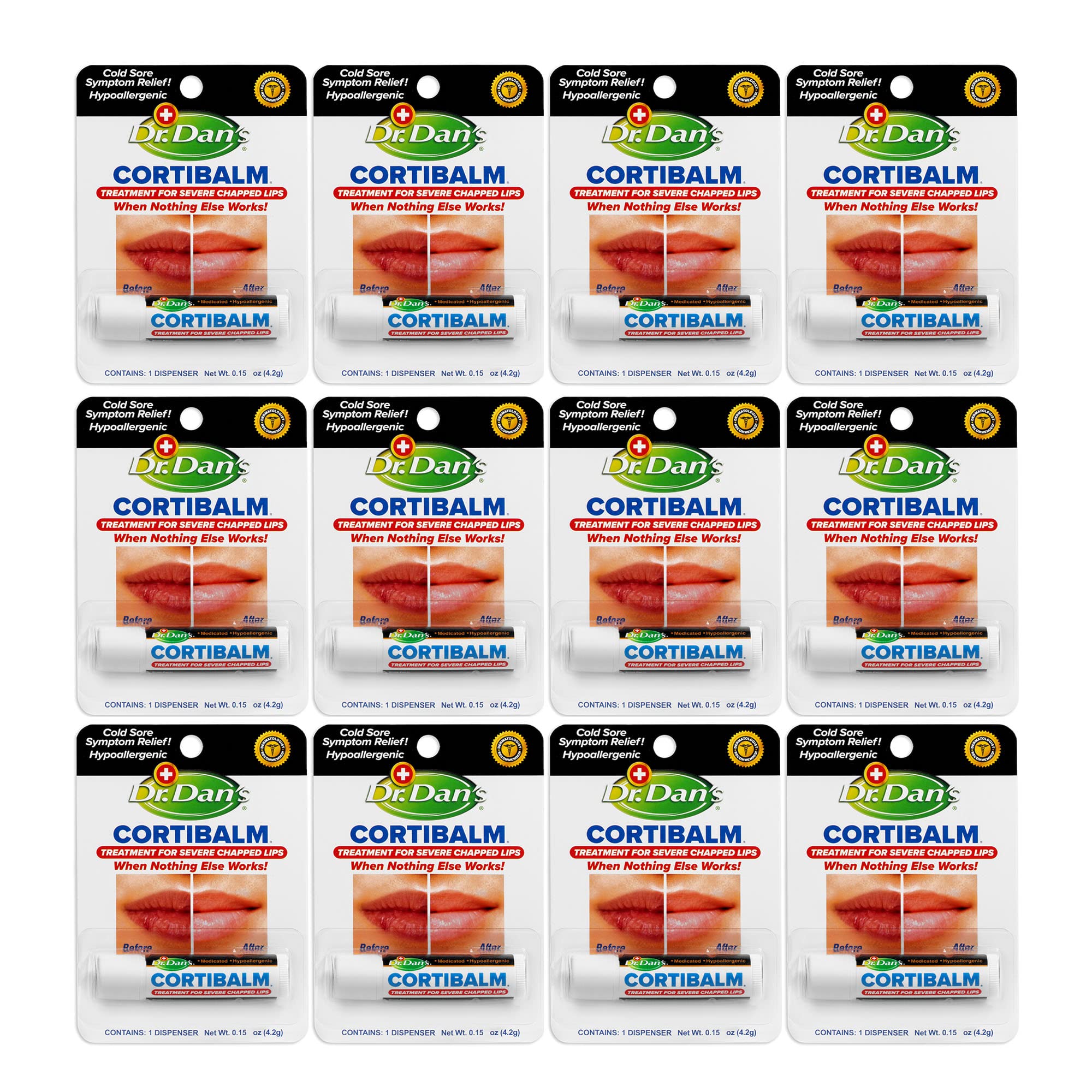 Dr. Dan's Cortibalm- 12 Pack - for Dry Cracked Lips - Healing Lip Balm for Severely Chapped Lips - Designed for Men Women and Children