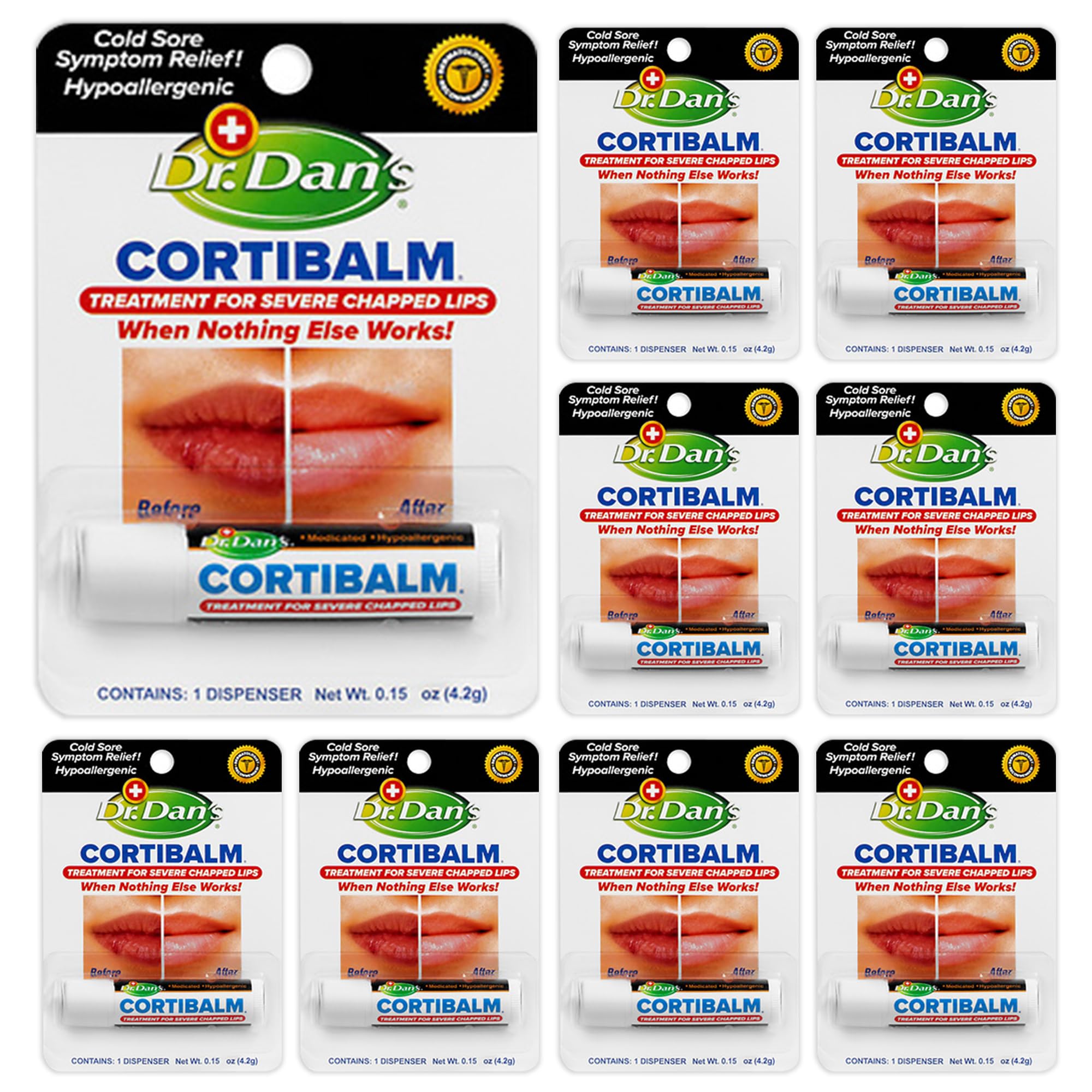 Dr. Dan's Cortibalm - 9 pack- for Dry Cracked Lips Healing Lip Balm for Severely Chapped Lips - Designed for Men Women and Children