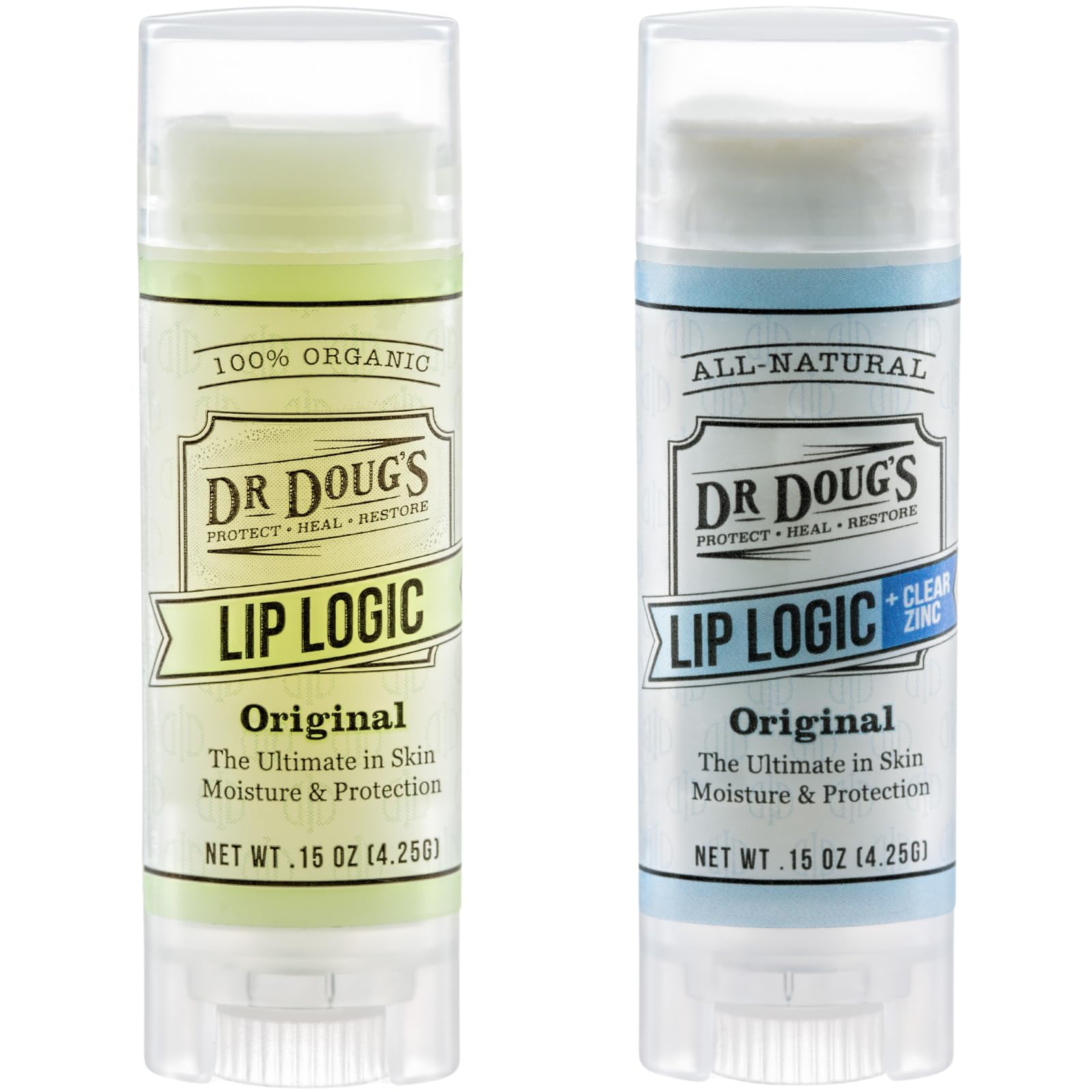 Dr. Doug s Lip Logic All-Natural Lip Balm Duo (2-Pack) | Hydrating Lip Care with Zinc for Sun Protection | Soothes Moisturizes and Shields Lips | Portable Non-Toxic Formula for Sensitive Skin