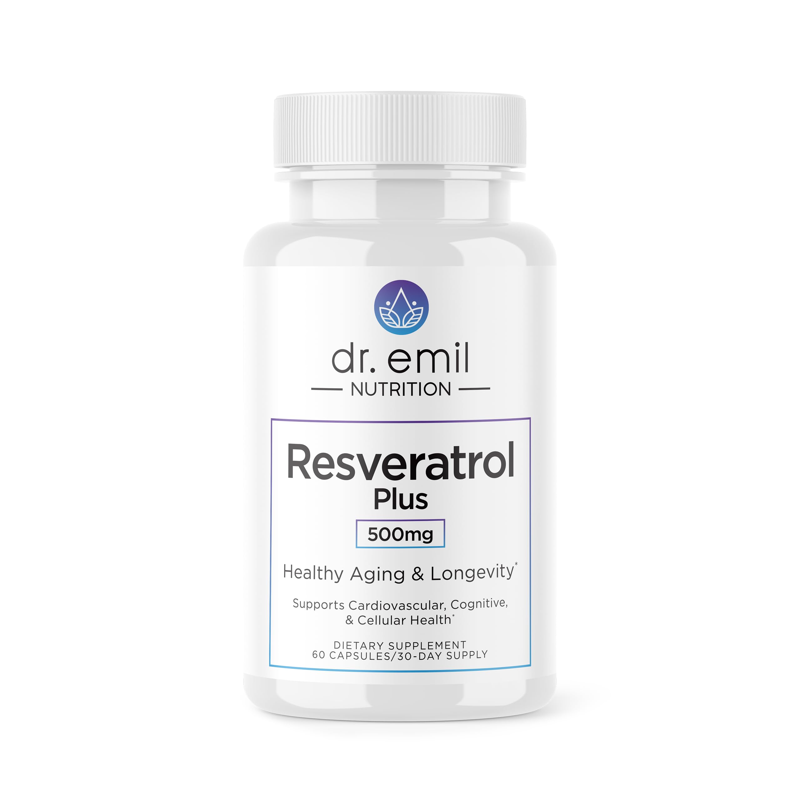 DR. EMIL NUTRITION Resveratrol Supplement - Healthy Aging Supplement with 500mg Resveratrol and 100mg Quercetin - Supports Normal Cellular & Cognitive Health 60 Capsules