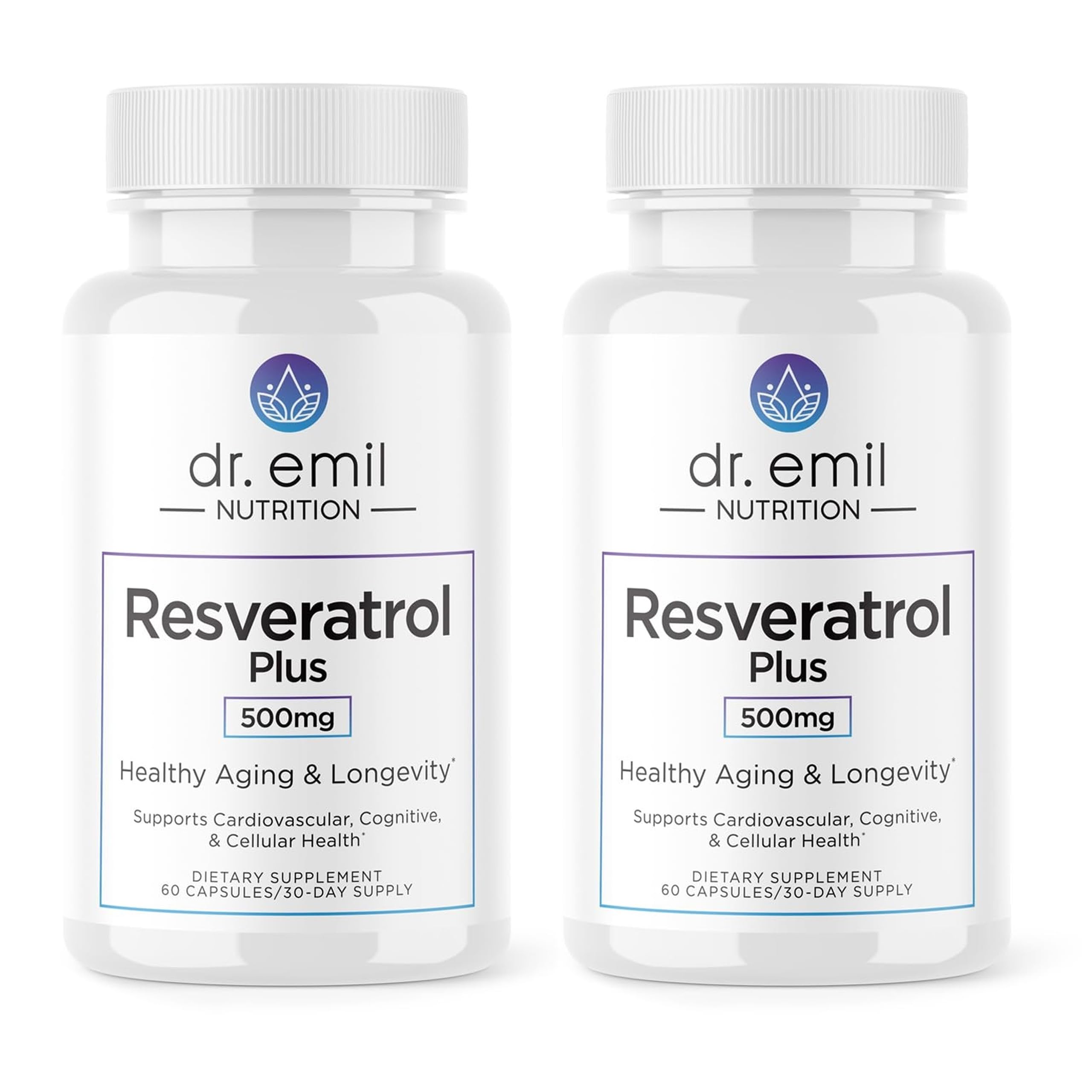 DR. EMIL NUTRITION Resveratrol Supplement - Healthy Aging Supplement with 500mg Resveratrol and 100mg Quercetin - Supports Normal Cellular & Cognitive Health Twin Pack