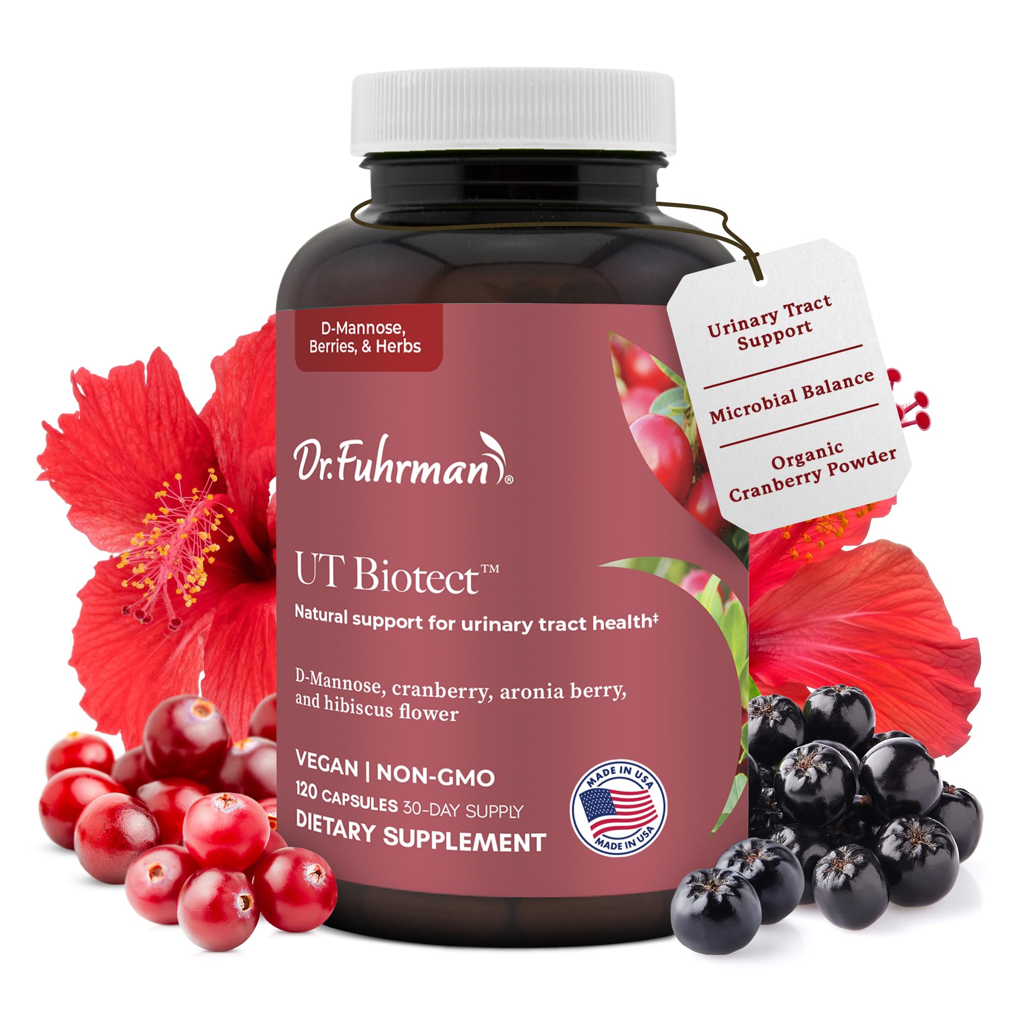 Dr. Fuhrman. Ut Biotect Urinary Tract Supplement | Wholefood Cranberry Pills for Women Made in The USA | D-Mannose Aronia Berry and Cranberry | Cleanses and Protects The Urinary Tract | 120 Caps