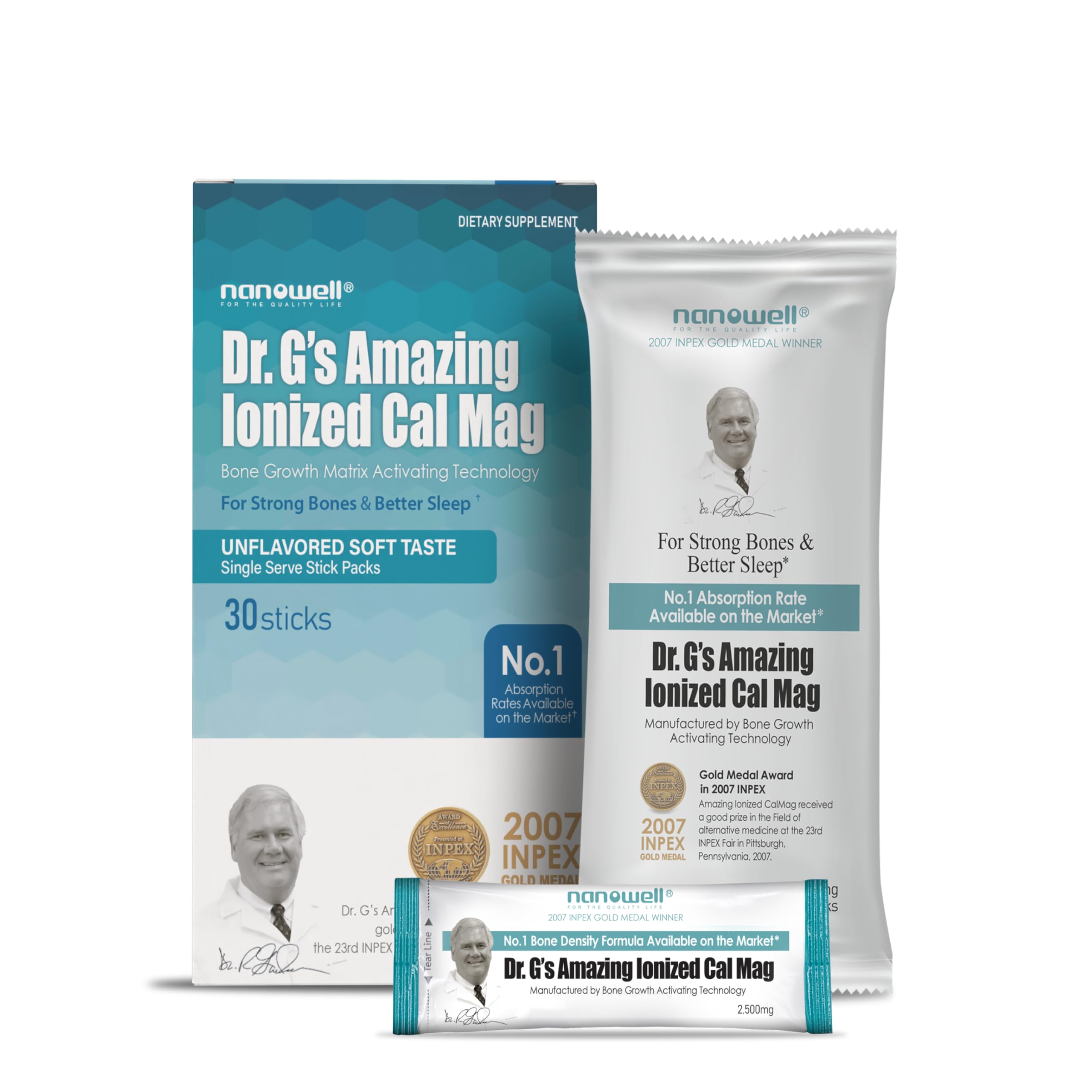 Dr. G's Amazing Ionized Cal Mag Powder Dietary Supplement for Bone Density Increase Calcium & Magnesium 2:1 Ratio - 30 Sticks 30 Day Supply