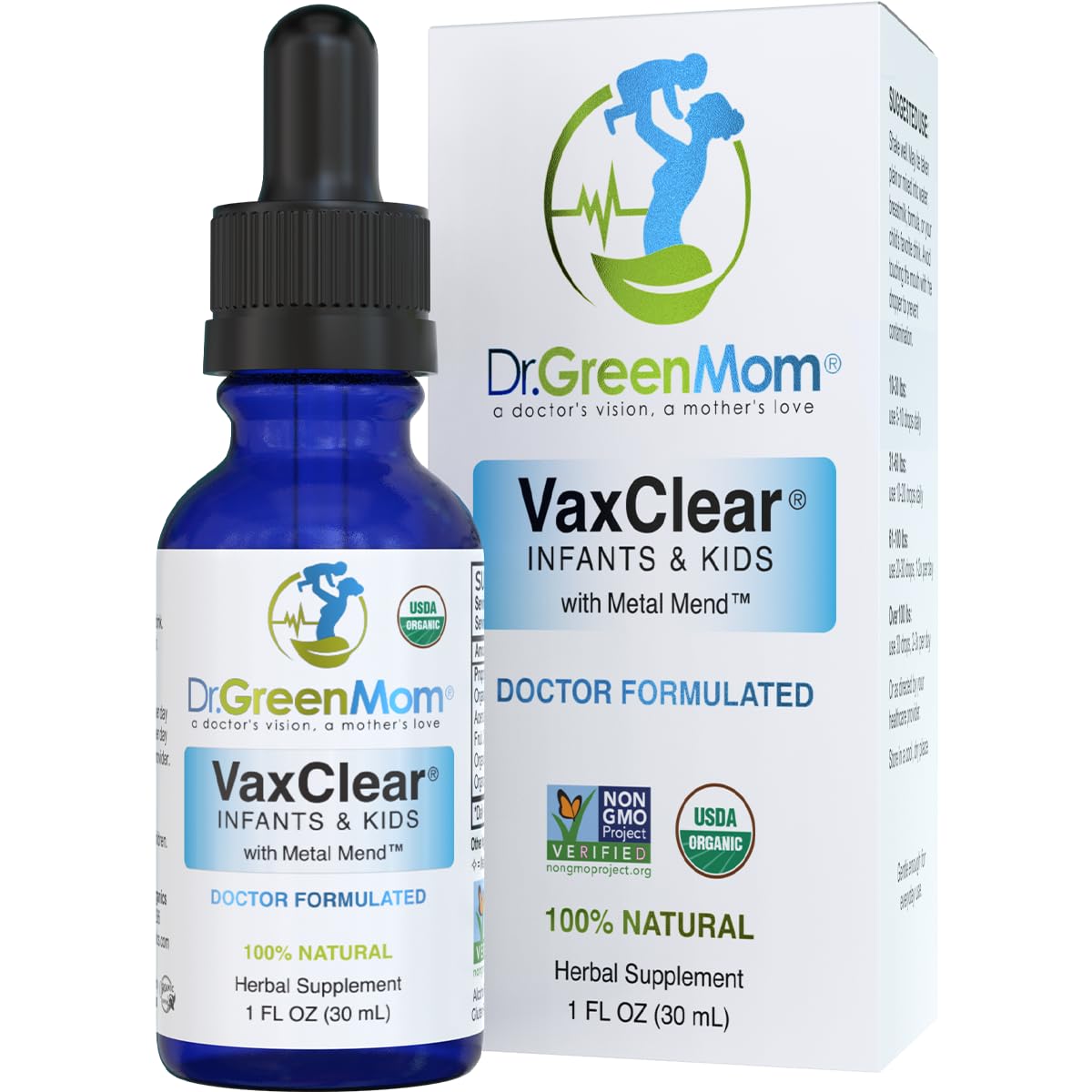 Dr. Green Mom's Vax Clear Liquid Drops are USDA Organic, Non-GMO, Vegan, Made in a GMP (Good Manufacturing Practice) Facility. Dairy Free, Nut Free, Gluten Free, Soy Free, Sugar Free, Glyphosate Tested, Kosher and Doctor Formulated with your child's health in mind. Doctor-Formulated 100 USDA Organic: Chlorella Thallus, Acerola Fruit, Turmeric Root, Rosehip Fruit, Milk Thistle Seed, Nettle Leaf, Oatstraw Aerial Parts, Burdock Root, Cilantro Leaf, and Parsley Leaf. Immune Modulating Herbs Encourage a Robust and Balanced Immune Response in Healthy Infants and Kids: Parents love this herbal supplement for support during and post routine childhood immunizations. Herbal Liquid Drops for Kids and Infants: This Physician Formulated and Third Party Tested herbal cleanse for kids comes in a convenient liquid form that contains only organic herbs, deionized water, and organic vegetable glycerine. Nothing else! The mild flavor is easily disguised in your infant, toddler or child's favorite drink or smoothie. Do not exceed the daily maximum dose as indicated on the bottle. Happy Children: At Dr. Green Mom and Dr. Green Life we offer natural solutions to support your family's health and wellbeing. This herbal supplement was thoughtfully formulated to provide support for gentle toxin detox in kids with the addition of powerful antioxidants to protect cellular health and integrity. Promotes Effective Toxin Elimination: This doctor formulated kids supplement supports infants, toddlers and kids in their natural ability to detox and cleanse. This herbal glycerite contains gentle herbs including chlorella, burdock root, cilantro, and parsley to support body's most important routes of elimination and the natural chelation of heavy metals.