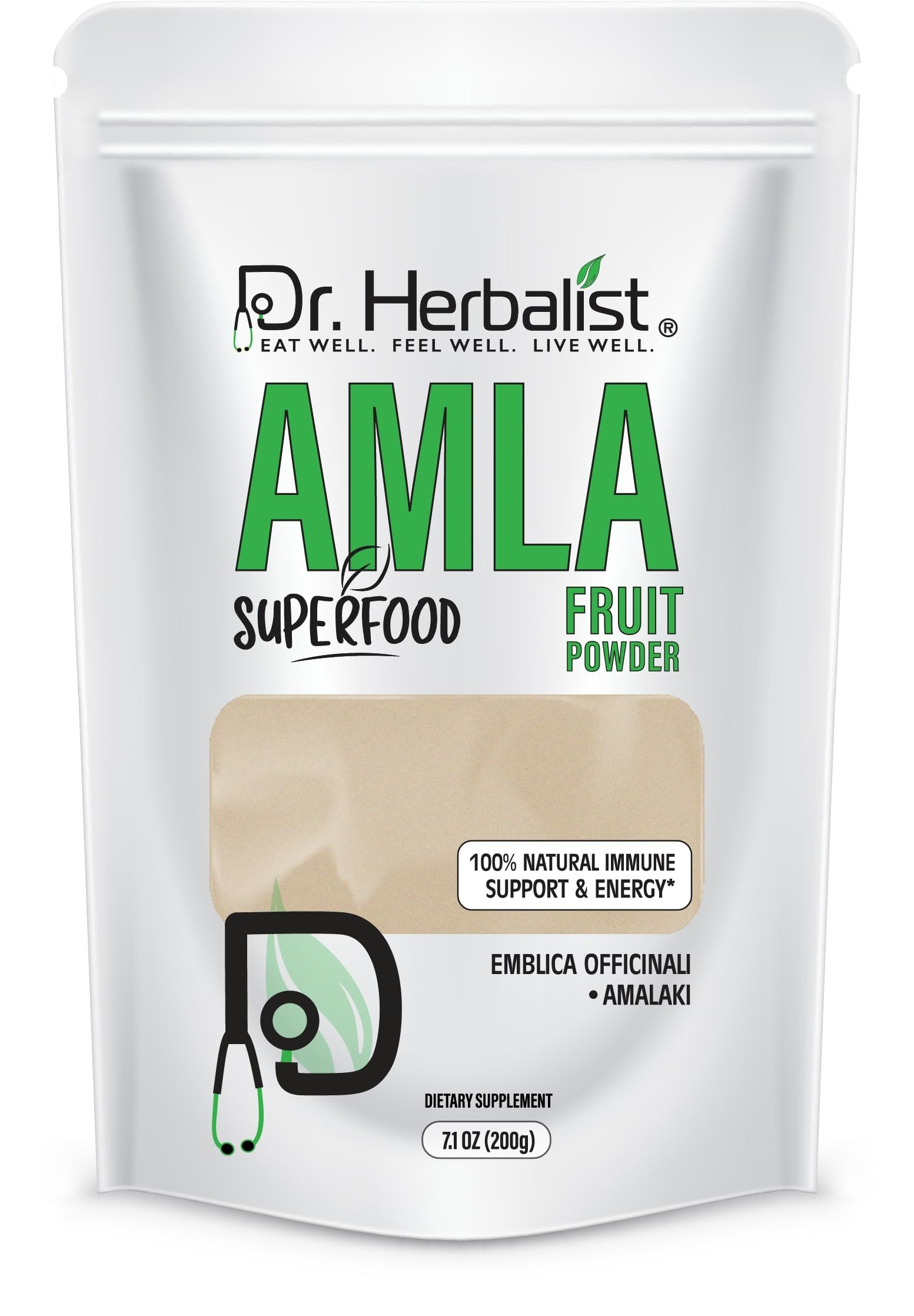 DR. Herbalist-7.1 OZ (200g) Amla Fruit Powder Amla Powder Organic for Eating Ascorbic Acid Powder Emblica Officinalis Amalaki for Immune Support & Energy