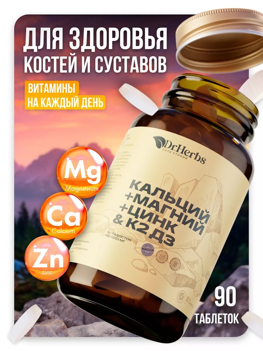 Dr. Herbs Кальций магний цинк витамины Д3 К2 для костей и волос