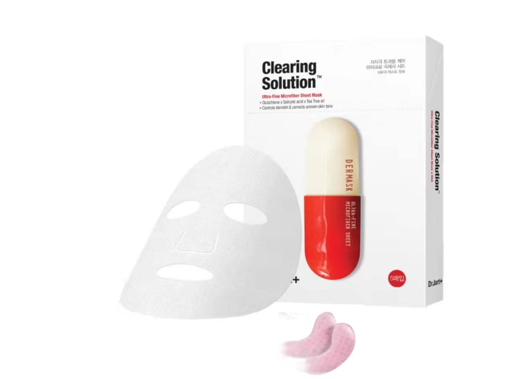 This Micro Jet Clearing Solution sheet mask is infused with a cleansing solution complex, a specially formulated blend with niacinimide and tea tree leaf oil, for oilier skin. Formulated for oily skin to help deliver soothing hydration. Result: Hydrated, healthier-looking skin in 15 minutes. Single-use, ultra-fine microfiber sheet. Dermatologically tested. Directions: Cleanse and apply toner. Peel off and discard the film liner, then apply the mask around your eyes and mouth. Leave on for 10-20 minutes. Remove the mask and gently pat in any remaining serum until fully absorbed. Contents: Dr. Jart Micro Jet Clearing Solution 1 box, 27g x 5 masks. Under Eye Sakura Cherry Blossom Eye Mask 1 pair Each piece is for single use only. Note: If you experience any skin discomfort before or during mask use, please discontinue use. If you have sensitive skin, please perform a patch test before applying the masks.Gentle, non-irritating, and hypoallergenic: it retains moisture, making it less sensitive to external stimuli to support the skin's natural functions. It's a choice for sensitive skin, with the gentle adhesion of fibers, straw, or a sheet. Super water-retention power: it has extraordinary water-retention power, allowing the skin to be hydrated for an extended period. Formulated with glutathione, aloe vera, and phytoncide to brighten the complexion, soothe sensitive skin, and provide intense hydration. Ultra-fine microfiber mask to whiten and soothe.DR.JART Dr. Jart Dermask Lot de 5 masques de solution nettoyante micro-jet masques sous les yeux en fleur de cerisier Sakura 1 paireDESCRIPTION DU PRODUIT Ce masque en feuille de solution nettoyante Micro Jet est infusé avec un complexe de solution nettoyante, un mélange spécialement conçu avec de la niacinimide et de l'huile de feuille d'arbre à thé, pour une peau plus grasse. Formulé pour les teints gras pour aider à fournir une hydratation apaisante à la peau. Résultat : une peau hydratée et plus saine en 15 minutes. Drap en microfibre ultra fine à usage unique. Testé dermatologiquement. Mode d'emploi : Nettoyez et appliquez le toner. Décollez, jetez la doublure du film et appliquez le masque autour des yeux et de la bouche. Laisser agir 10 à 20 minutes. Retirez le masque et tapotez doucement le sérum restant jusqu'à absorption complète. Contenu : Dr. Jart Micro Jet Clearing Solution 1 boîte, 27 g x 5 masques. Under Eye Sakura Cherry Blossom Masque pour les yeux 1 paire Chaque pièce est à usage unique. Remarque : Si vous avez une gêne cutanée avant ou pendant l'utilisation des masques, veuillez arrêter de les utiliser. Si votre peau est sensible, veuillez effectuer un test de sensibilité avant d'appliquer les masques.Doux, non irritant et hypoallergénique : il retient l'humidité de la peau moins sensible aux stimuli externes afin de soutenir les fonctions naturelles de la peau et adopte un choix pour la peau sensible, l'adhérence douce des fibres ou la paille ou le drap. Super puissance de rétention d'eau : il a un pouvoir extraordinaire de rétention d'eau, permettant à la peau d'être hydratée pendant une longue période. Formulé avec du glutathion, de l'aloe vera et du phytoncide pour illuminer le teint, apaiser les peaux sensibles et fournir une hydratation intense. Masque en microfibre ultra fine pour blanchir et apaiser.