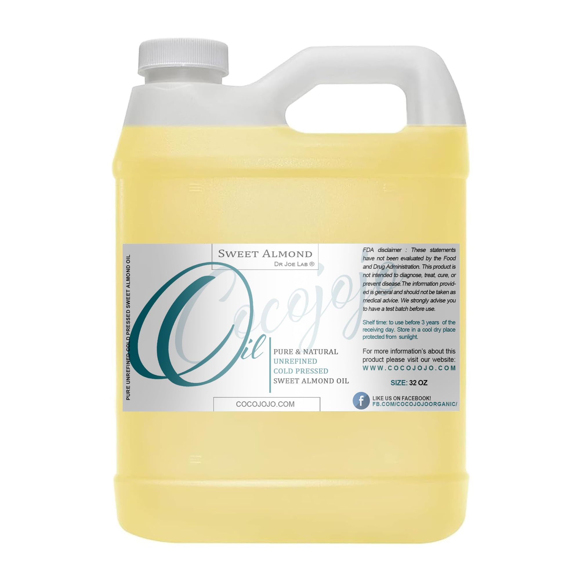 HAIR CARE: Sweet Almond Oil for hair can be used as a conditioner to improve water retention of hair. Sweet Almond Oil moisturizes and softens hair for a shinier and glossy appearance and can be used on scalp to improve dryness conditions. SKIN CARE: Sweet Almond Oil for skin can be used to improve the moisture barrier. Almond Oil absorbs deeply into the skin to improve the retention of water, keeping skin moisturized for longer periods of time on dry areas to help improve skin. NATURAL BENEFITS: Cold Pressed Sweet Almond Oil contains natural moisturizing components that help maintain healthier skin and hair. Vitamins and minerals found in Sweet Almond Oil can help soften hair and help improve skin conditions. NUTRIENT RICH: Sweet Almond Essential Oil is rich in nutrients suchs as vitamins B, D and E. Almond Oil also contains thiamine, riboflavin, and niacin. Minerals found in Sweet Almond Oil are zinc, calcium, iron, phosphorus, magnesium, potassium. SWEET ALMOND OIL: Dr Joe Lab sweet almond oil is 100 Pure and Natural Almond with Cold Pressed and Unrefined Quality made with Grade A standards at an US based manufacturing facility. We can guarantee high quality sweet almond oil for each use.