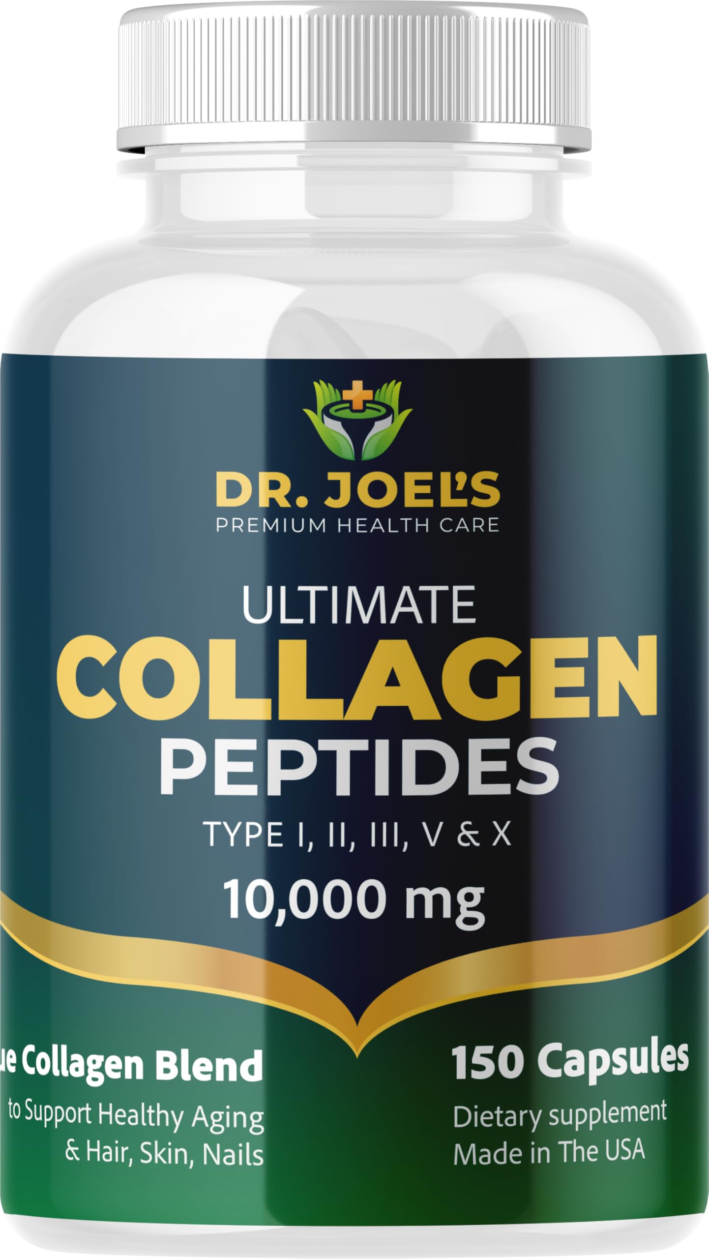 ✓QUALITY YOU CAN TRUST - Dr JOEL's dietary supplements are made in the USA at a GMP(NSF) certified facility with 4 step quality control. With confidence and pride we stand behind our product. Not satisfied? We are just a knock away!. ✓ MUSCLES, BONES JOINTS SUPPORT - Our collagen blend helps reducing risk of bone fractures and improves your mobility. Our multi collagen is a supplement that gives bones joints their flexibility and boosts muscle strength. ✓ ULTRA REJUVENATION FORMULA - Dr JOEL's collagen helps with wrinkles, moisturizes skin, make your hair nails stronger and healthier. If you are 25 , collagen supplement is essential to support your healthy aging. . ✓ MAXIMUM POTENCY - Dr JOEL's collagen complex 10000 mg per serving is the maximum dosage of collagen complex available! With Biotin, Bioperine Hyaluronic acid, it's your perfect daily collagen supplement!. ✓ 5 TYPES COLLAGEN PEPTIDES BLEND - Get your collagen needs covered with our two in one, super collagen supplement! Dr JOEL's collagen complex comes with a potent, high-quality blend of collagen types I, II, III, V X.