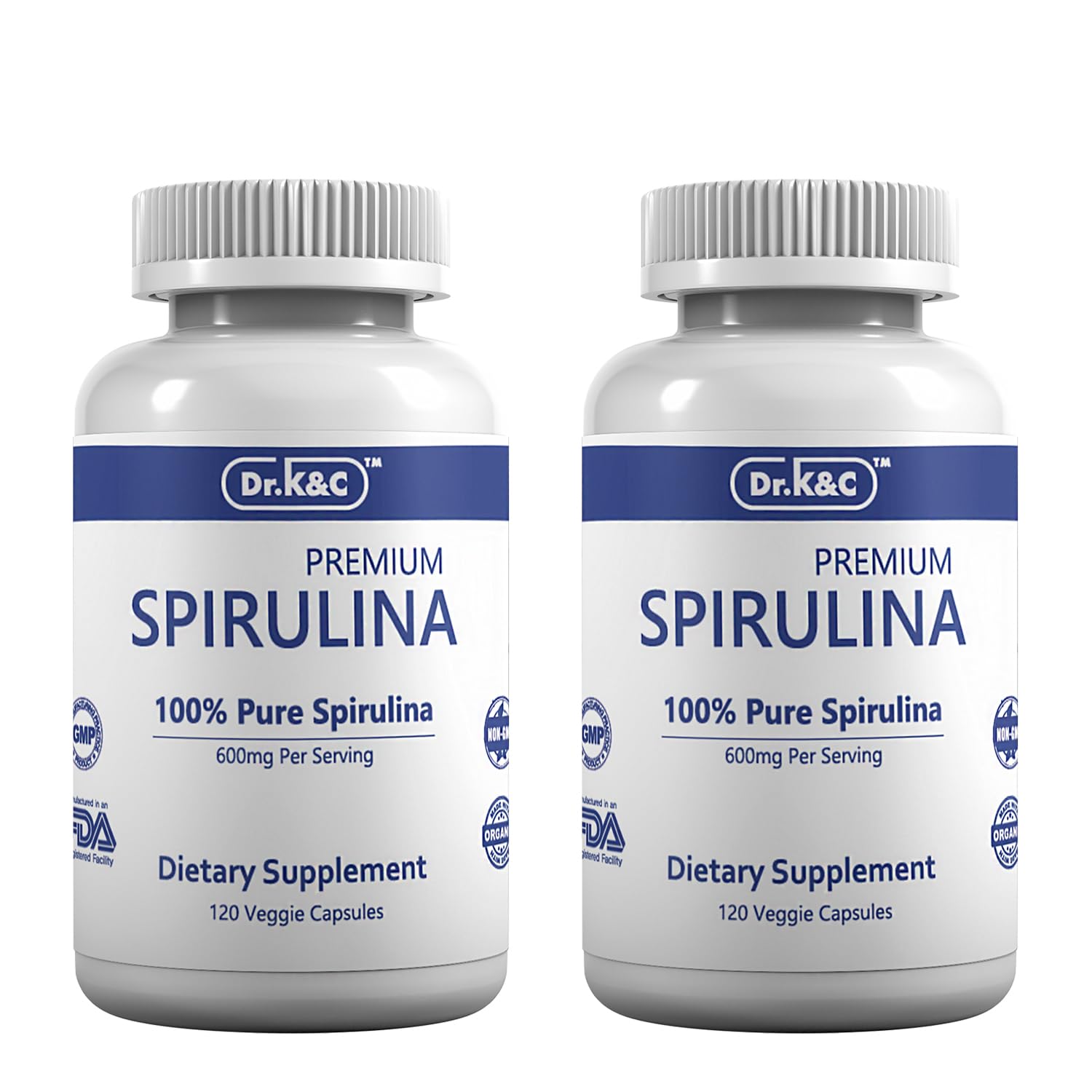 Expiration Date: 04 2028RECOMMENDED USE – Adults take 1 capsules twice daily, preferably with meals. Discontinue use and consult your doctor if any adverse reactions occur. If you get an allergic reaction, stop taking and see your healthcare professional immediately. Keep out of reach of children. Store in a cool, dry place, away from direct sunlight. Do not use it if the seal is broken or missing. BENEFITS OF SPIRULINA – This nutrient dense superfood assists in the prevention of cholesterol from being oxidized in the body. It also reinforces the body's overall immune system, provides a source of clean green energy booster, and has cleansing and detox factors that help to improve your health. This supplement also helps enhance skin health for healthier, younger skin. IMPROVE HEALTH WELLBEING – Spirulina is a spiral-shaped, blue-green microalgae that is made of between 55-70 protein. Phycocyanin found in spirulina is a powerful antioxidants. It is rich in essential amino acids, antioxidants, iron, and has high levels of protein, vitamins, and minerals. It may help promote healthier skin, boost immune system, and assist in reducing toxins in your body. This is an easy to take supplement with no aftertaste. HIGHEST QUALITY SAFETY – All of our Dr.K C products are manufactured in the USA with ingredients sourced from around the world. Dr.K C Premium Spirulina is manufactured at a cGMP compliant facility with rigorous testing protocols and lab testing of every batch. With the fresh sea vegetable aroma and flavor of the freshest source of organic spirulina, you can guarantee real natural quality and effectiveness with the extensive quality testing done on our products. 100 PURE SPIRULINA – Dr.K C Premium Spirulina uses only top quality, organic, pure spirulina and contains no fillers, excipients, binders or additives. Made of 100 veggie ingredients, these vegetable capsules are non-GMO, vegan friendly, and all active ingredients sourced from nature. As it is all-natural, you can feel good about taking this natural supplement to better improve your overall health and wellbeing. Spirulina is a perfect nutrition dense superfood for vegetarians.