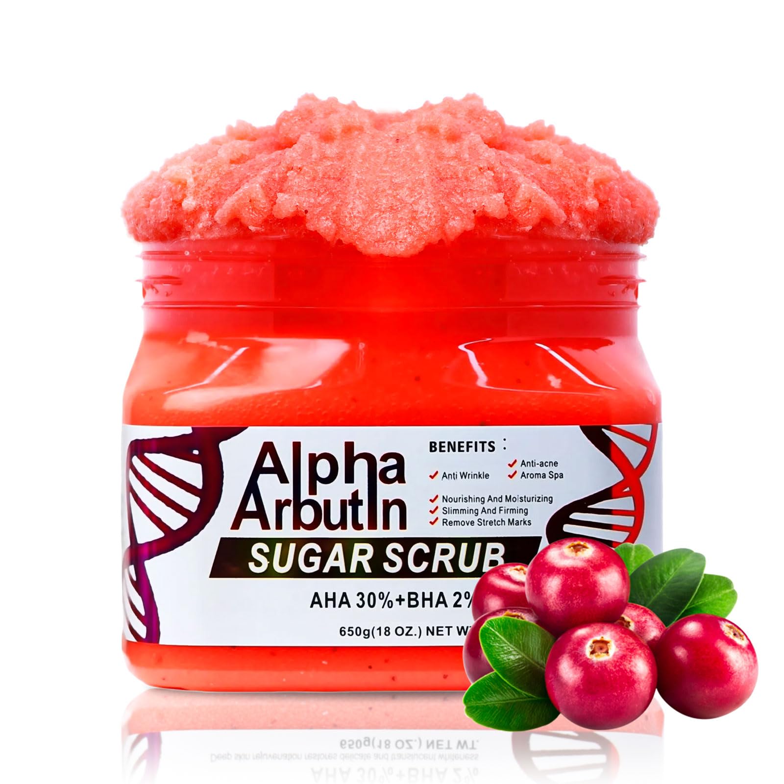 SKIN ENHANCEMENT: Contains Alpha Arbutin to help improve skin appearance while the scrub gently polishes and refines. DUAL ACTION: Sugar-based scrub combines physical and chemical exfoliation for enhanced skin smoothing and brightening results. GENEROUS SIZE: Large 18 oz (650g) container provides ample product for full-body exfoliation treatments. MULTIPLE BENEFITS: Targets anti-acne and anti-wrinkle concerns while providing deep nourishment and moisturization to the skin. EXFOLIATING FORMULA: Features AHA BHA for effective skin exfoliation and renewal, helping to remove dead skin cells and improve skin texture.