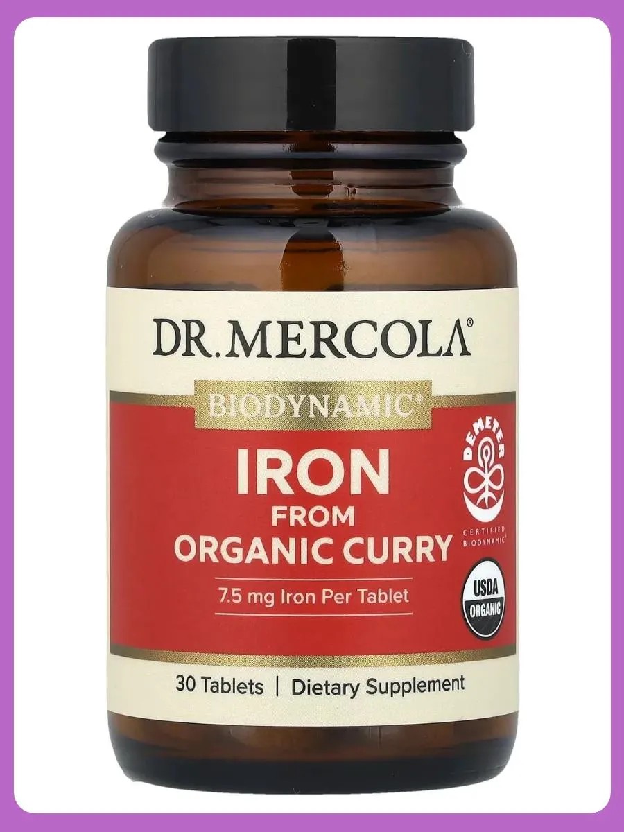 Dr. Mercola, Biodynamic — Железо из органического карри. Железо — важнейший элемент для здоровья каждого организма! Наш уникальный продукт Biodynamic, созданный Dr. Mercola, обеспечит ваш организм необходимым количеством чистого натурального железа природного происхождения. Благодаря особой технологии обработки и использованию исключительно органических компонентов, наше средство отличается высокой усвояемостью и эффективностью. Увеличьте усвояемость железа с помощью железа из органического карри, изготовленного из листьев карри Biodynamic и плодов амлы, богатых витамином С. Эта эффективная смесь, полученная с использованием чистой воды без использования химикатов, поддерживает энергию, выносливость, здоровье иммунной системы, а также укрепляет волосы, кожу и ногти, обеспечивая все преимущества железа в чистом виде. Поддерживайте свое здоровье вместе с натуральным железом от Dr. Mercola! Забота о вашем организме начинается именно с выбора качественного питания и эффективных добавок.