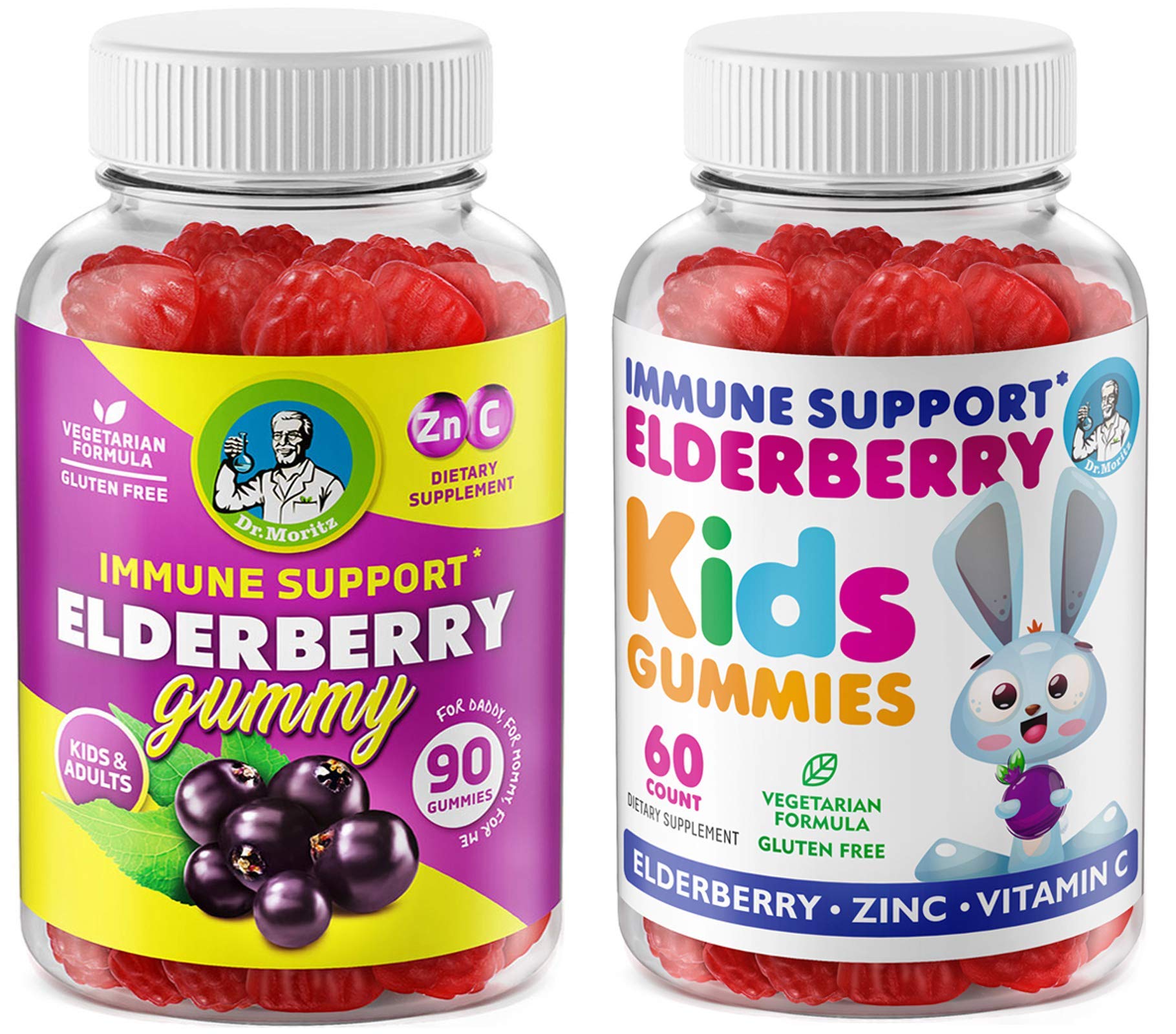 DR. MORITZ Elderberry Gummies for Kids and Family- Immune System Booster and Health Support with Black Sambucus Elderberries Extract - Vitamin and Zinc Herbal Immunity Boost Supplement for Children