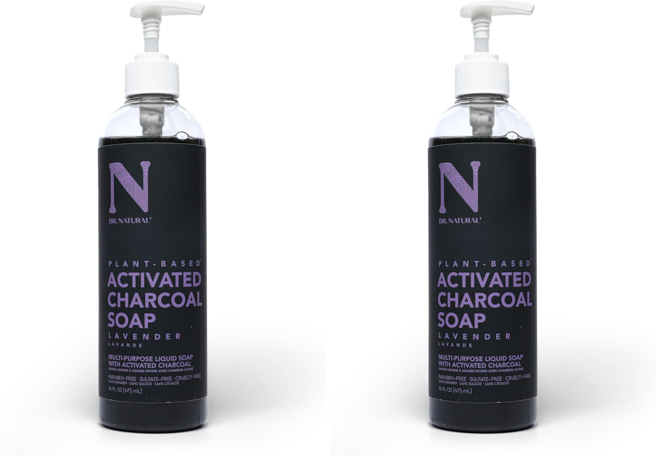 Dr. Natural Activated Charcoal Liquid Soap - Anti Acne and Blemishes - Deep Cleansing Body Wash - Gentle Body Soap for Clear Skin - Lavender - 16 oz (Pack of 2) Lavender 16 Fl Oz (Pack of 2)