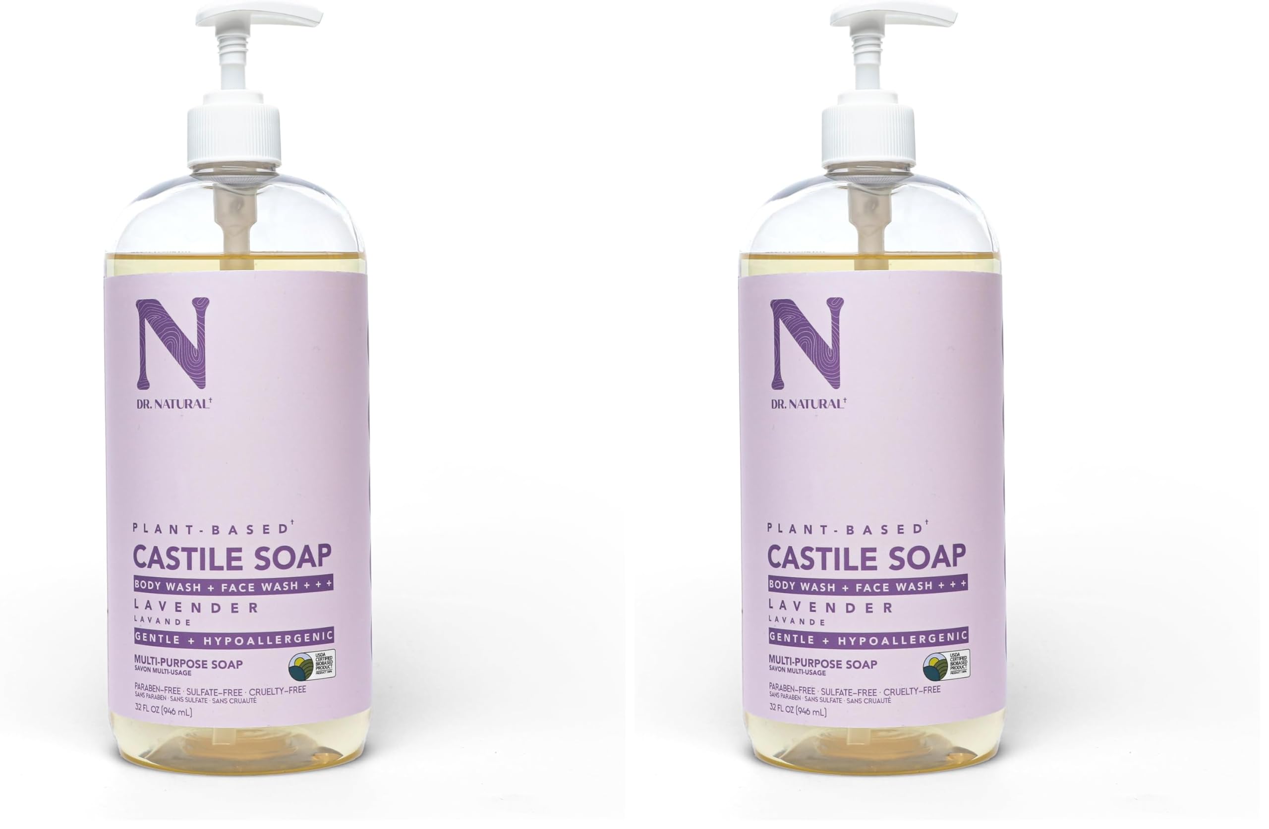 Dr. Natural Castile Liquid Soap Lavender 32 oz - Plant-Based - Made with Organic Shea Butter - Rich in Coconut and Olive Oils - Sulfate and Paraben-Free Cruelty-Free - Multi-Purpose Soap Lavender 32 Fluid Ounces (Pack of