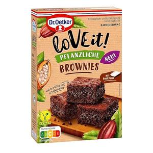 Dr.Oetker love it!Vegetable brownies with the love it!Baking mix for herbal brownies by Dr.Oetker are conjured up chocolate, vegan brownies onto the coffee table in no time at all.The vegetable brownies are simply in preparation and on weekends, the next coffee with friends or for the family celebration.With their juicy consistency, the brownies also ensure joy and enjoyment among non-vegans.For the Dr.Oetker love it!Brownies only requires water and cooking oil and the baking pleasure can begin.The range of Dr.Oetker baking mixes love it!comprises: • love it!Vegetable brownies • love it!Vegetable muffins hazelnut Ingredients ingredients Ingredients: sugar, wheat flour, 9.3 cocoa powder, 6.2 chocolate (sugar, cocoa mass, low -fat cocoa powder, cocoa butter, emulsifier (lecithine (soy))), pea -heel, baking agent (sodium carbonates).Can contain: egg, milk, hazelnuts.Rainforest Alliance-certified cocoa.More on this at Ra.org. Instructions This contains the pack: 480 g baking mix for the dough 1 baking pan only add: 150 ml of water 80 ml of food oil, e.g.B. Rapese oil 1 prepare the baking pan according to the instructions (on the baking pan).Preheat oven.Upper bottom heat: About 160 C hot air: Prepare about 140 C 2 dough in a mixing bowl for the dough, add water and oil.All with a mixer (stirring sticks) in 2 minutes briefly to a lower and then stir to a smooth dough at the highest level.Pour the dough into the baking pan.3 Bake shape on the rust in the oven.Insert: Middle baking time: 35-40 min. Let the pastries cool in the mold.Loosen the edge of the mold with a panel knife.Fold on the side and cut 15 pieces.The brownies can be easily loosened with the panel knife. Address manufacturer importer 33547 Bielefeld MoreContent: 1 x 480 G Dr.Oetker baking mix for the dough, 1 baking pan.For every occasion: Whether for a birthday, Easter or Christmas - the delicious brownies provide joy on various occasions.Enjoy together: The Brownies invite you to bake and enjoy with family and friends.Easy preparation: The baking mix is easily prepared with food oil and water.For chocolate lovers: the vegetable brownies impress with their juicy consistency and the delicious chocolate taste.Dr. Oetker LoVE it! Pflanzliche Brownies Mit der LoVE it! Backmischung für pflanzliche Brownies von Dr. Oetker werden im Handumdrehen schokoladige, vegane Brownies auf die Kaffeetafel gezaubert. Die pflanzlichen Brownies sind einfach in der Zubereitung und am Wochenende, zum nächsten Kaffeetrinken mit Freunden oder zur Familienfeier ein Erfolg. Mit ihrer saftigen Konsistenz sorgen die Brownies auch bei Nicht-Veganern für Freude und Genuss. Für die Dr. Oetker LoVE it! Brownies bedarf es nur Wasser und Speiseöl und schon kann das Backvergnügen beginnen. Das Sortiment der Dr. Oetker Backmischungen LoVE it! umfasst: • LoVE it! Pflanzliche Brownies • LoVE it! Pflanzliche Muffins Haselnuss INHALTSSTOFFE ZUTATEN Zutaten: Zucker, WEIZENMEHL, 9,3 Kakaopulver, 6,2 Schokolade (Zucker, Kakaomasse, fettarmes Kakaopulver, Kakaobutter, Emulgator (Lecithine (SOJA))), Erbseneiweiß, Backtriebmittel (Natriumcarbonate). Kann enthalten: EI, MILCH, HASELNÜSSE. Rainforest Alliance-zertifizierter Kakao. Mehr dazu unter ra.org. GEBRAUCHSANWEISUNG Dies enthält die Packung: 480 g Backmischung für den Teig 1 Backform Nur noch hinzufügen: 150 ml Wasser 80 ml Speiseöl, z. B. Rapsöl 1 Vorbereiten Die Backform nach Anleitung (auf der Backform) aufstellen. Backofen vorheizen. Ober- Unterhitze: etwa 160 C Heißluft: etwa 140 C 2 Teig bereiten Backmischung für den Teig in eine Rührschüssel geben, Wasser und Öl hinzufügen. Alles mit einem Mixer (Rührstäbe) in 2 Min. kurz auf niedriger und dann auf höchster Stufe zu einem glatten Teig verrühren. Teig in die Backform füllen. 3 Backen Form auf dem Rost in den Backofen schieben. Einschub: Mitte Backzeit: 35-40 Min. Das Gebäck in der Form erkalten lassen. Rand der Form mit einem Tafelmesser lösen. Seiten der Form aufklappen und 15 Stücke schneiden. Die Brownies lassen sich einzeln mit dem Tafelmesser einfach lösen. ANSCHRIFT HERSTELLER IMPORTEUR 33547 Bielefeld MehrINHALT: 1 x 480 g Dr. Oetker Backmischung für den Teig, 1 Backform. FÜR JEDEN ANLASS: Ob zum Geburtstag, an Ostern oder Weihnachten - die leckeren Brownies sorgen bei verschiedensten Anlässen für Freude. GEMEINSAM GENIEßEN: Die Brownies laden zum gemeinsamen Kuchen Backen und Genießen mit Familie und Freunden ein. EINFACHE ZUBEREITUNG: Die Backmischung wird unkompliziert mit Speiseöl und Wasser zubereitet. FÜR SCHOKO-LIEBHABER: Die pflanzlichen Brownies überzeugen durch ihre saftige Konsistenz und den lecker schokoladigen Geschmack.Dr. Oetker LoVE it! Pflanzliche Brownies – vegane Backmischung für alle Schokoladen-Fans