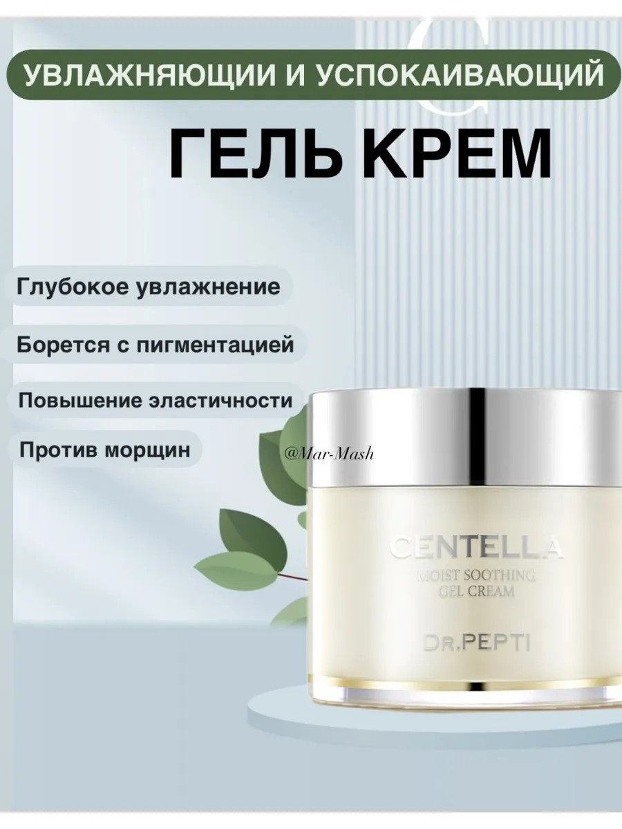 Увлажняющий гель крем DR. Pepti+ Centella Moist Soothing Gel Cream обеспечивает интенсивное увлажнение и успокаивает кожу. Крем Корея подходит для всех типов кожи, включая сухую, комбинированную, жирную и чувствительную. Его уникальная формула содержит высококонцентрированный экстракт центеллы, который известен своими успокаивающими и восстанавливающими свойствами. Средство помогает увлажнить кожу изнутри,выравнивает тон лица. Премиальное средство увлажняющий также содержит гиалуроновую кислоту, которая обладает мощными увлажняющими свойствами. Она способствует улучшению эластичности кожи и подтягивает контуры лица. Также сыворотка Корея содержит пептиды, которые стимулируют естественный процесс обновления клеток кожи.Гель с лифтинг эффектом помогает уменьшить видимость морщин и пигментных пятен, делая кожу более молодой и сияющей. Антивозрастной продукт имеет легкую текстуру, которая быстро впитывается и не оставляет жирного блеска. Крем имеет успокаивающий эффект, снимает воспаление и раздражение, делая кожу более здоровой и сияющей. Продукт для лица имеет гипоаллергенный состав, не содержит искусственных красителей и ароматизаторов. Профессиональный крем обеспечивает комплексный уход за кожей, увлажняет, успокаивает и омолаживает, делая ее здоровой и сияющей. СПОСОБ ПРИМЕНЕНИЯ: На последнем этапе ухода за кожей возьмите необходимое количество и аккуратно нанесите на все лицо, слегка постучите для впитывания. Использовать утром и вечером.