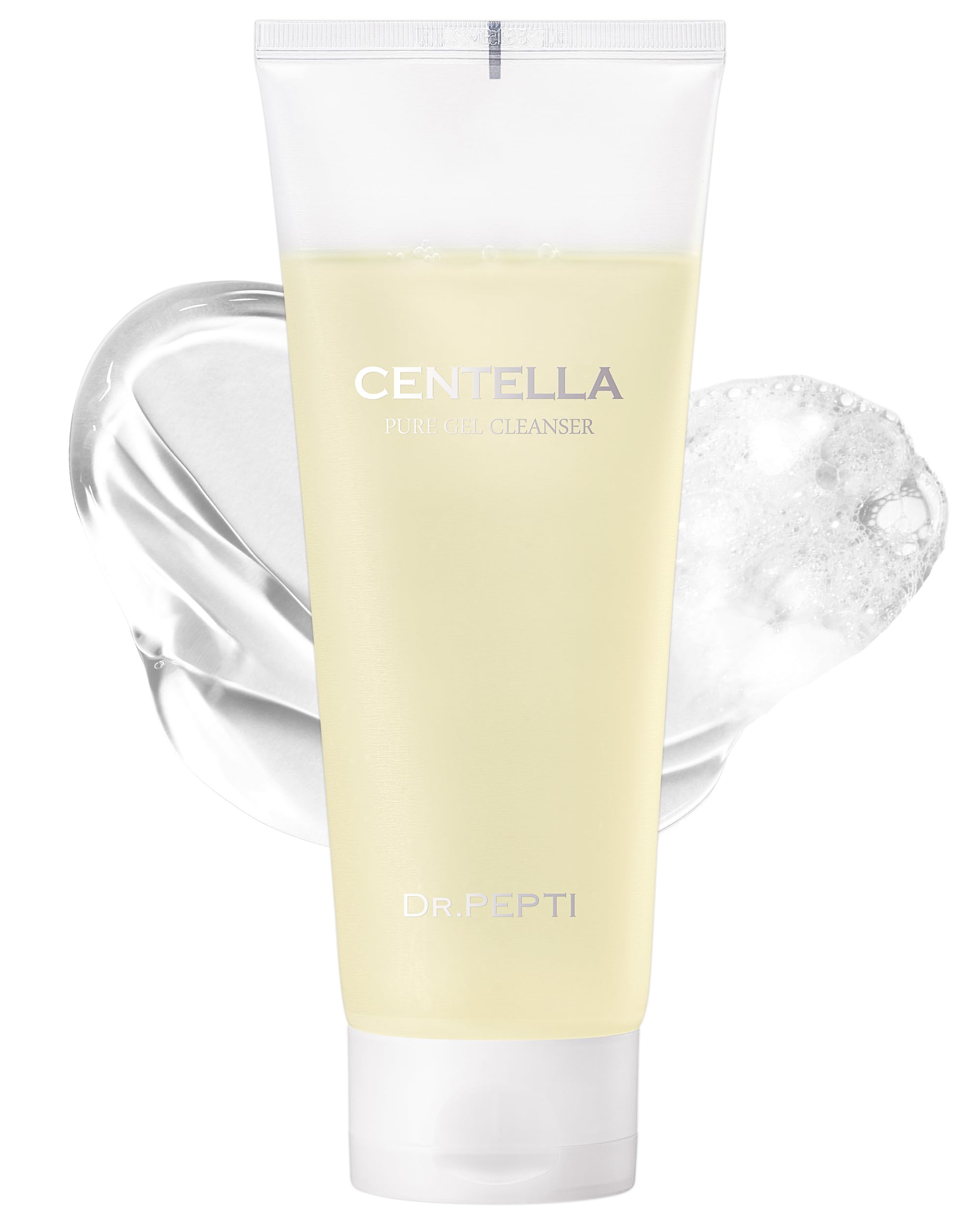 DR.PEPTI Centella Pure Gel Cleanser - Korean Face Wash Gentle Daily Cleanser for Sensitive Dry Skin with Salicylic Acid BHA Peptides - pH Balanced Gel to Bubble Wash 6.76 fl.oz.