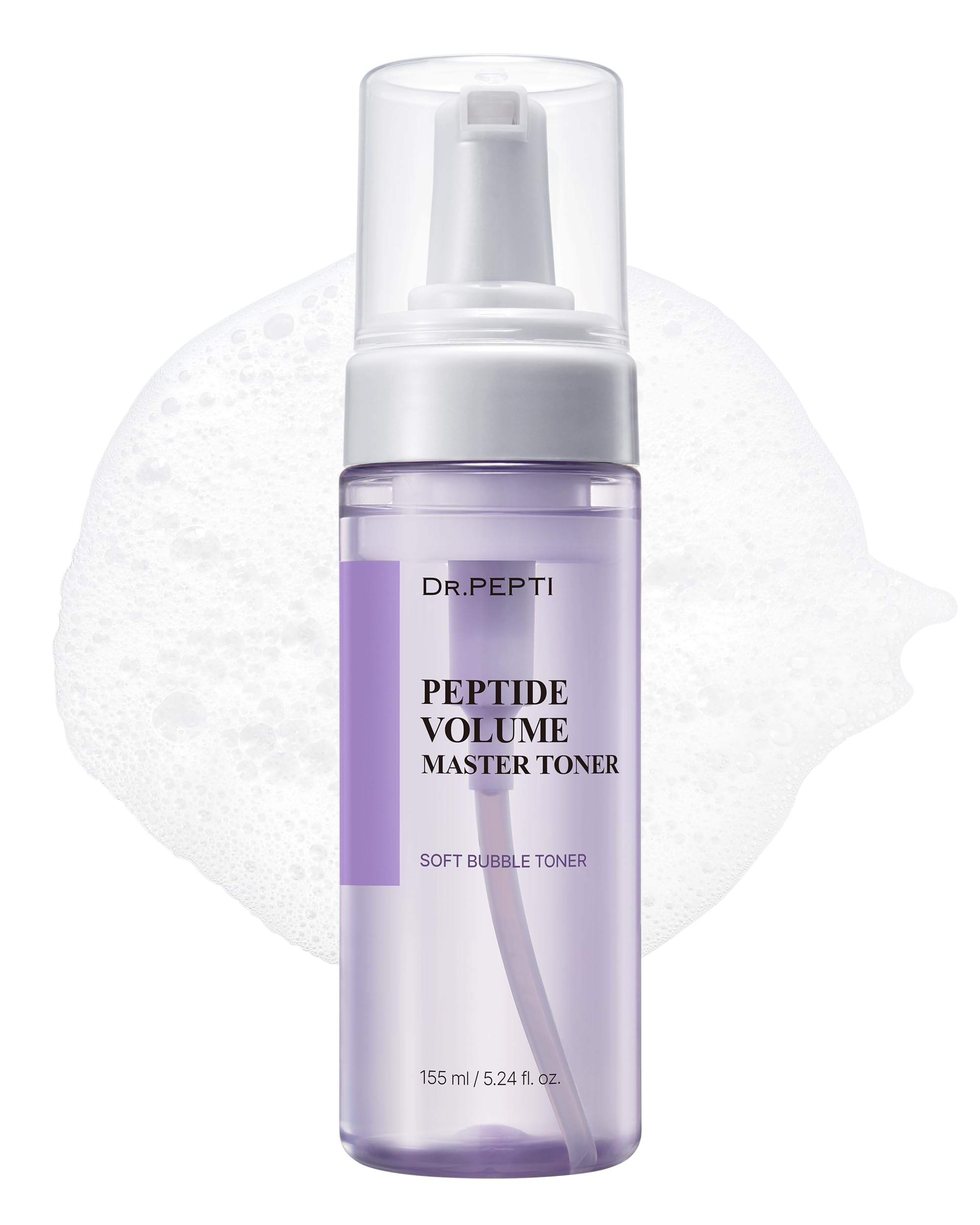 DR.PEPTI Korean Peptide Volume Master Toner for Face - 12 Peptides Bubble Formula Pore Refining Elasticity Hydrating Facial Toner with Hyaluronic Acid Collagen Centella for All Skin Types 5.24 fl.oz.